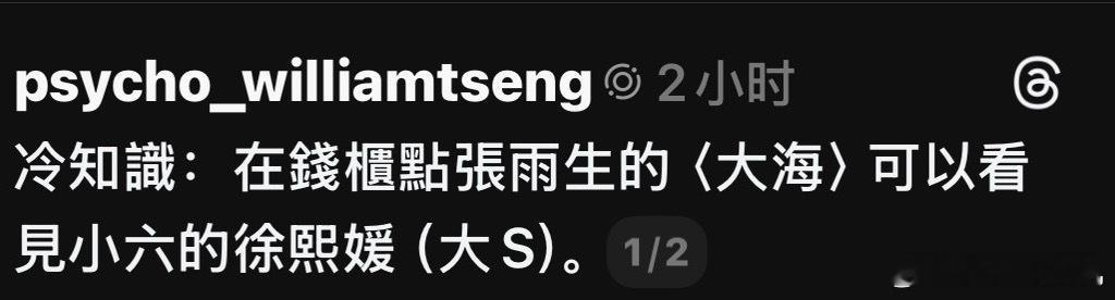 冷知识:在钱柜点张雨生的《大海》,可以看到小学六年级的大s