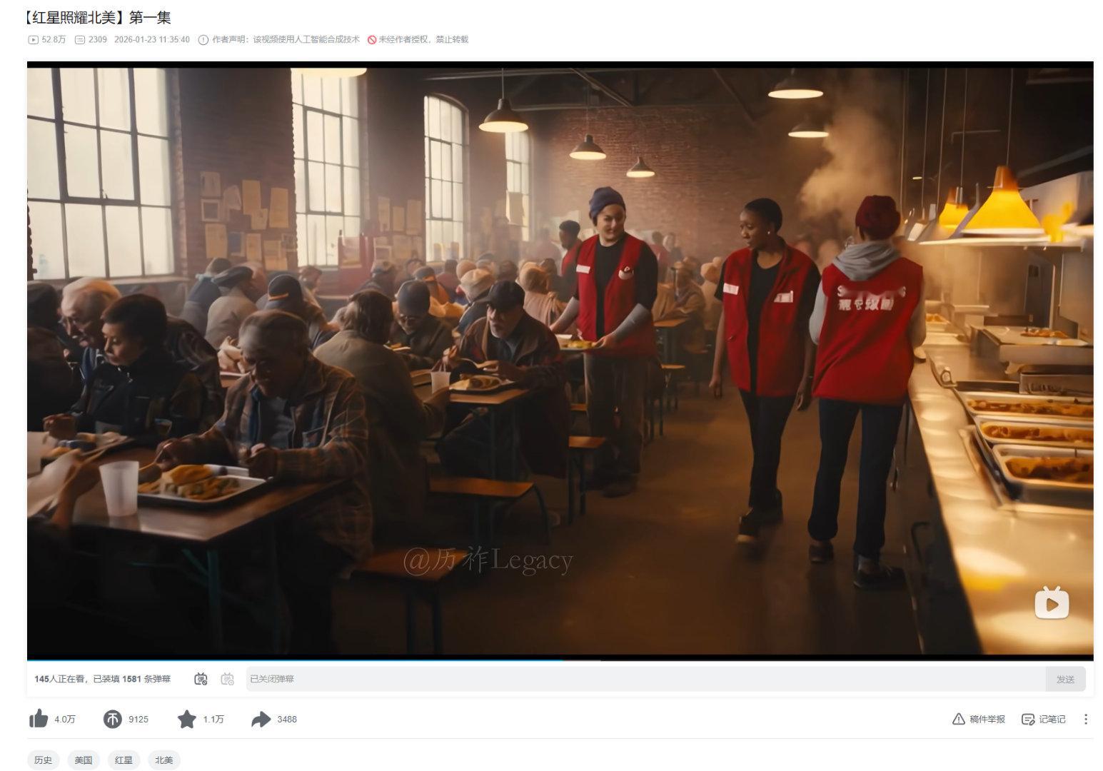 哇!最近外网那个“假如中国替代了美国”的AI视频好火!但其实那个爆火的卡段来自小破站的阿婆主 历祚Legacy 的《红星照耀北美》。中式美国幻想视频里直接虚构了一个“华盛顿 陷 落 后”的平行世界,什么胰 岛 素全民管、官员搞KPI…设定又科幻又扎心,看得人莫名爽快。另一头,他讲淞沪会战的视频又认真又动人,“一寸山河一寸血”看得眼眶一热。他主页一堆“中式美利坚”小短片,脑洞开得又怪又合理,我上次随便点开一个,结果刷到凌晨三点……外网AI视频假如中国替代了美国