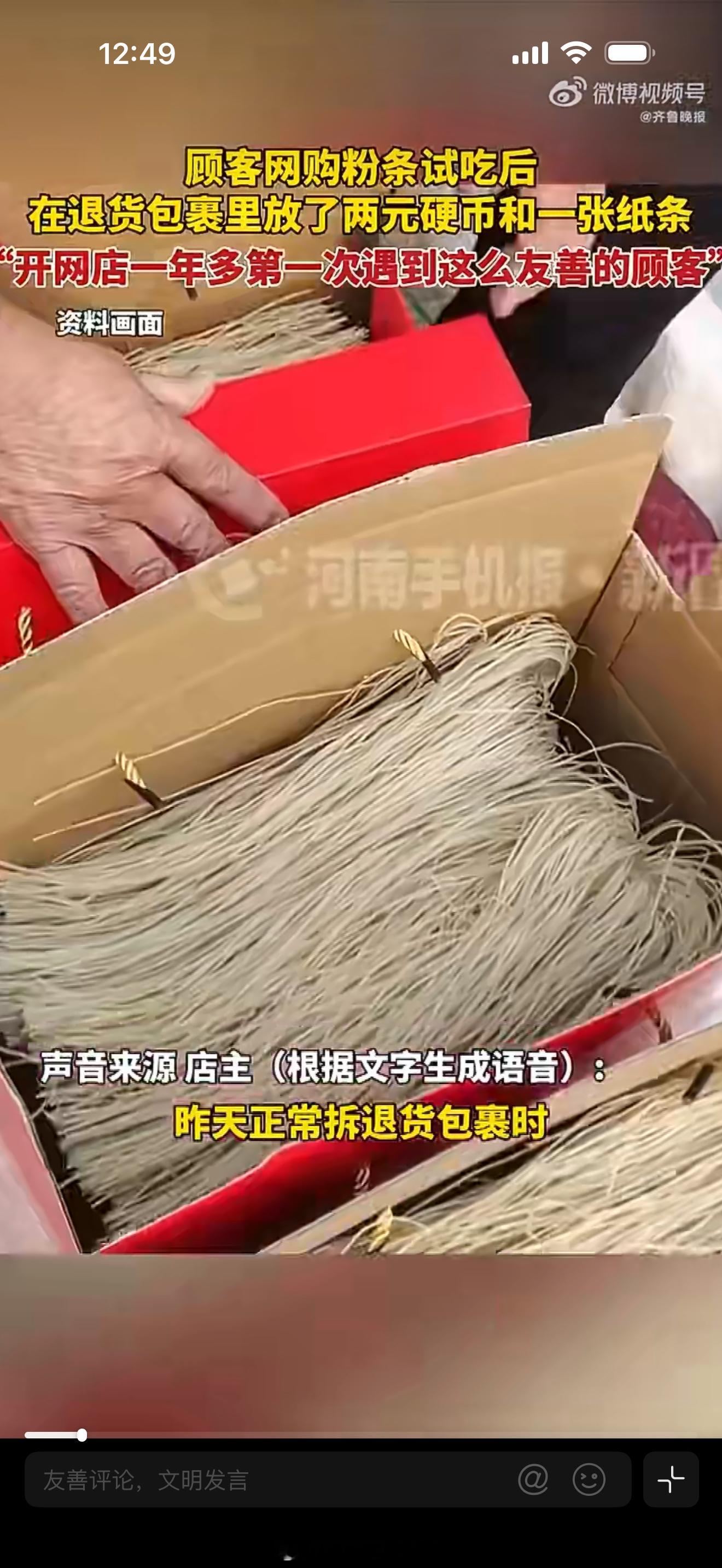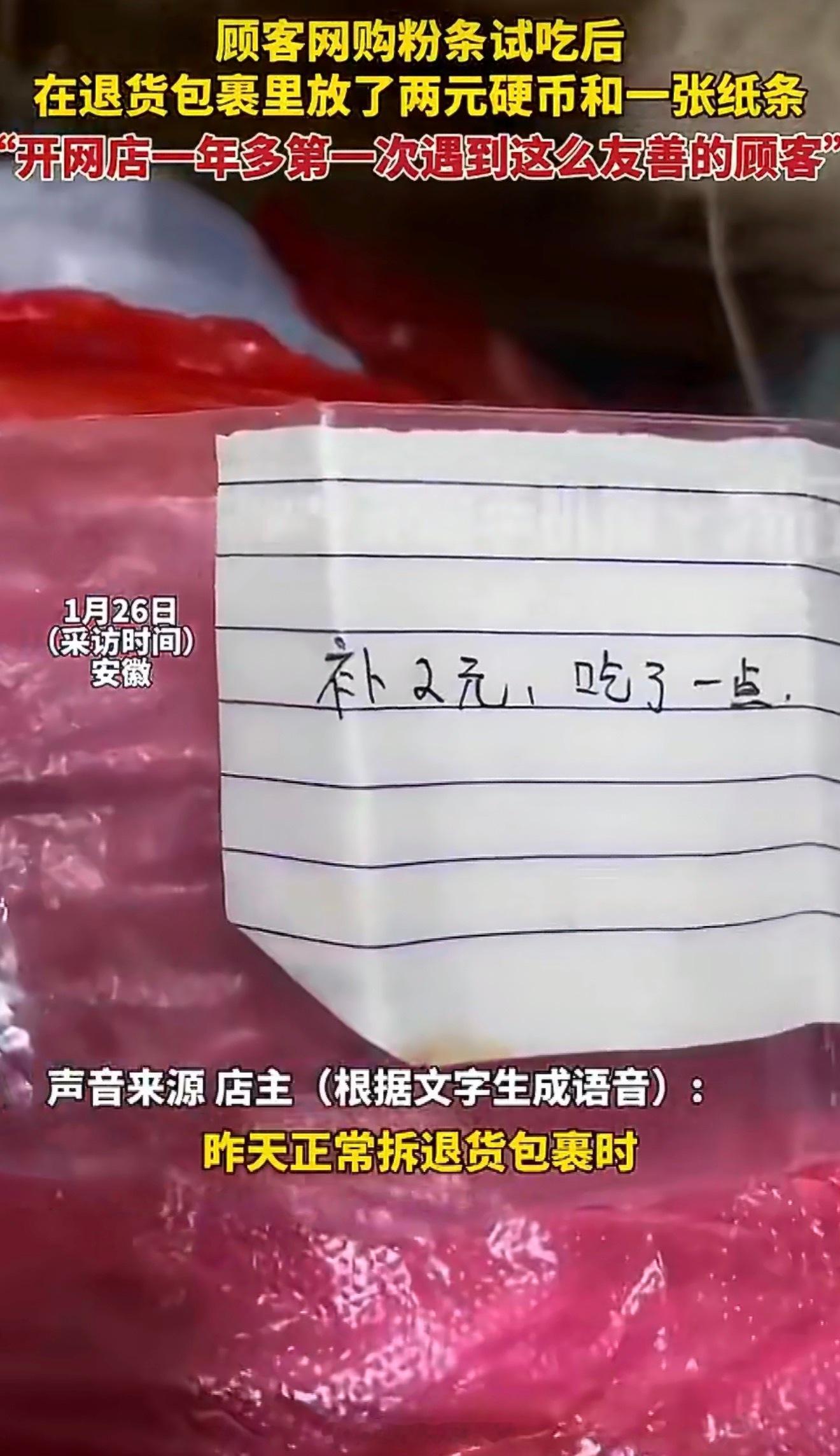 收到2元试吃费的粉条店主回应退货揽收的快递小哥天塌了