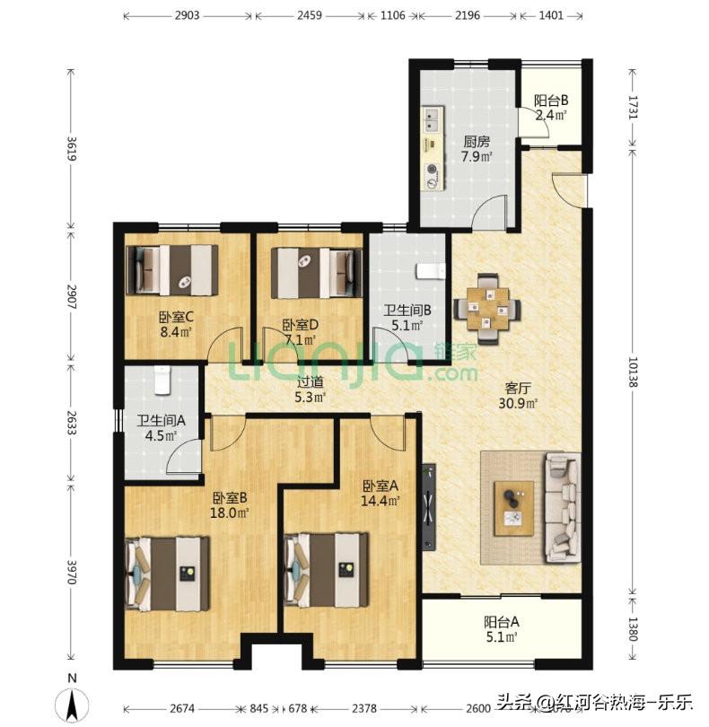 新房套内98平,赠送97平。 买个141平的四室新房,得房面积干到了接近200平