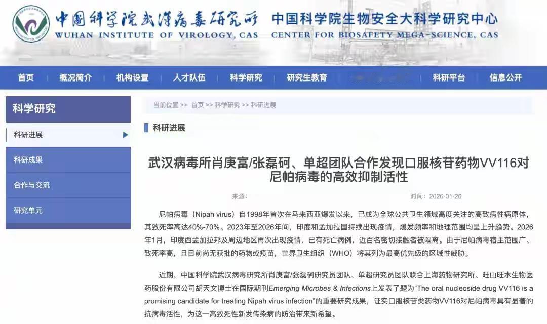 遥遥领先,我们已经发现对尼帕病毒有效的药物。该药物由武汉病毒所研究发现(内容见图片)。所以说,尼帕病毒我们有招,不用害怕了,我这一块石头落了地!