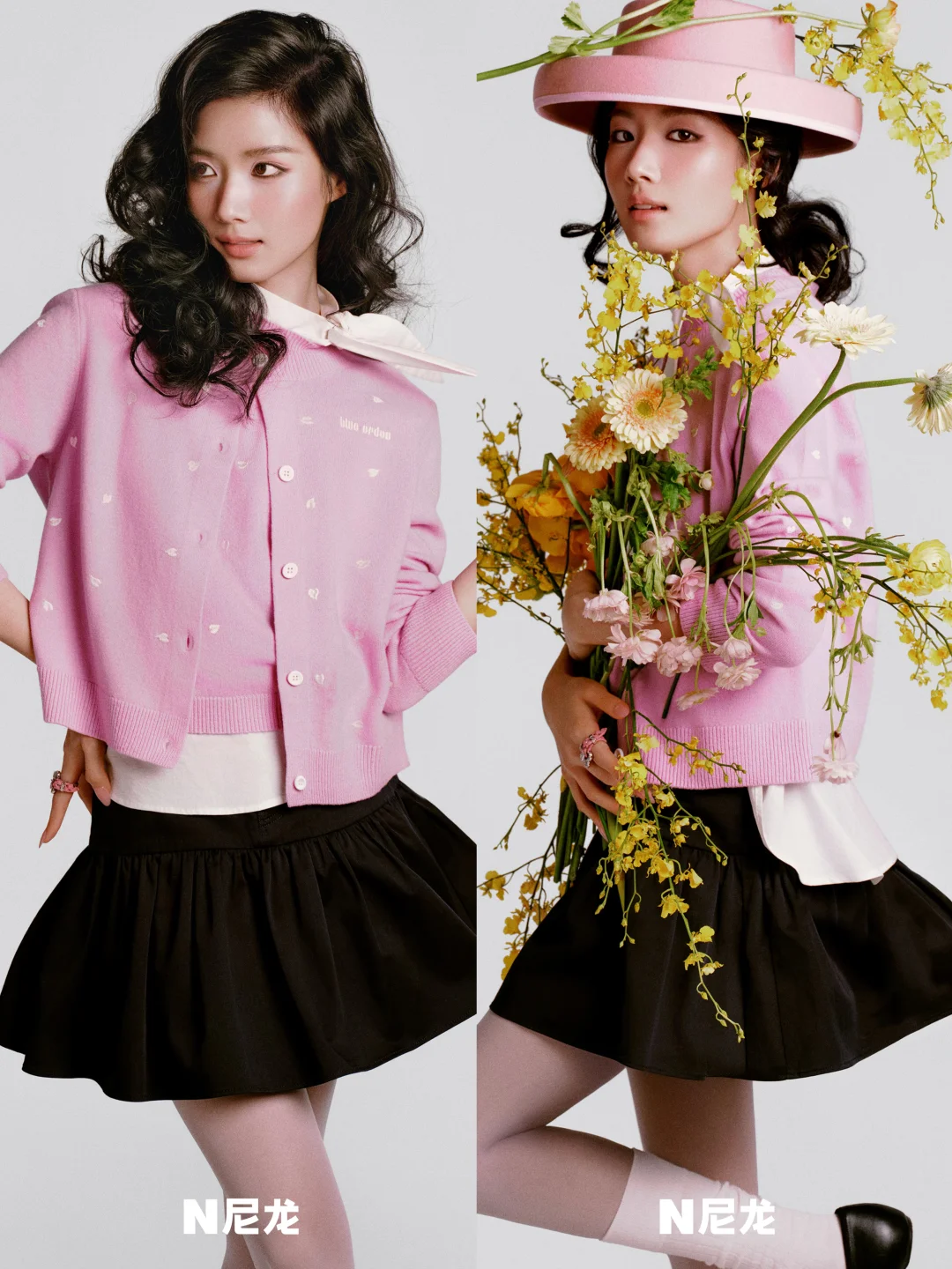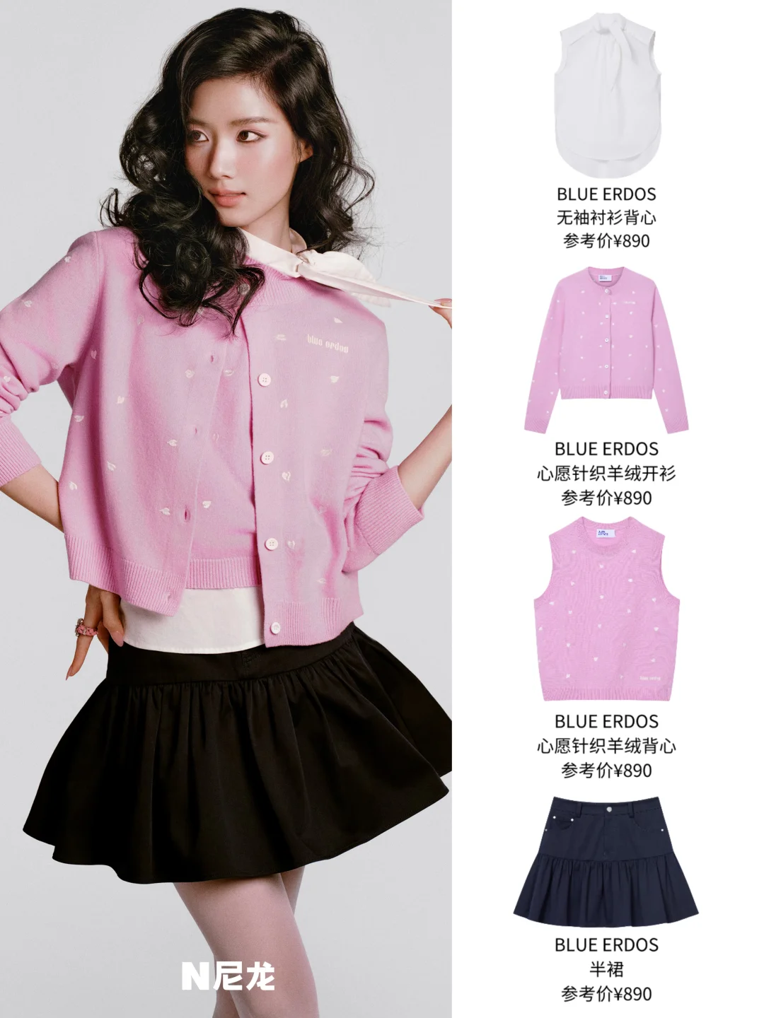 像卢昱晓尼龙开年刊大片的这套心愿针织Look太绝了,粉色羊绒叠穿同色系背心,内搭扭结设计的白衬衫加以留白,再配上蓬蓬裙,甜美又灵动!