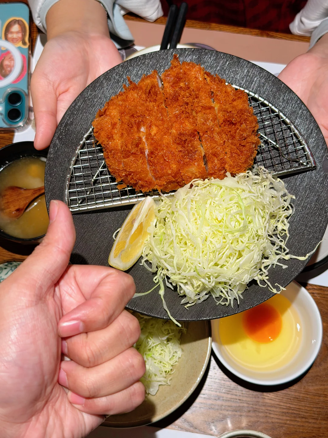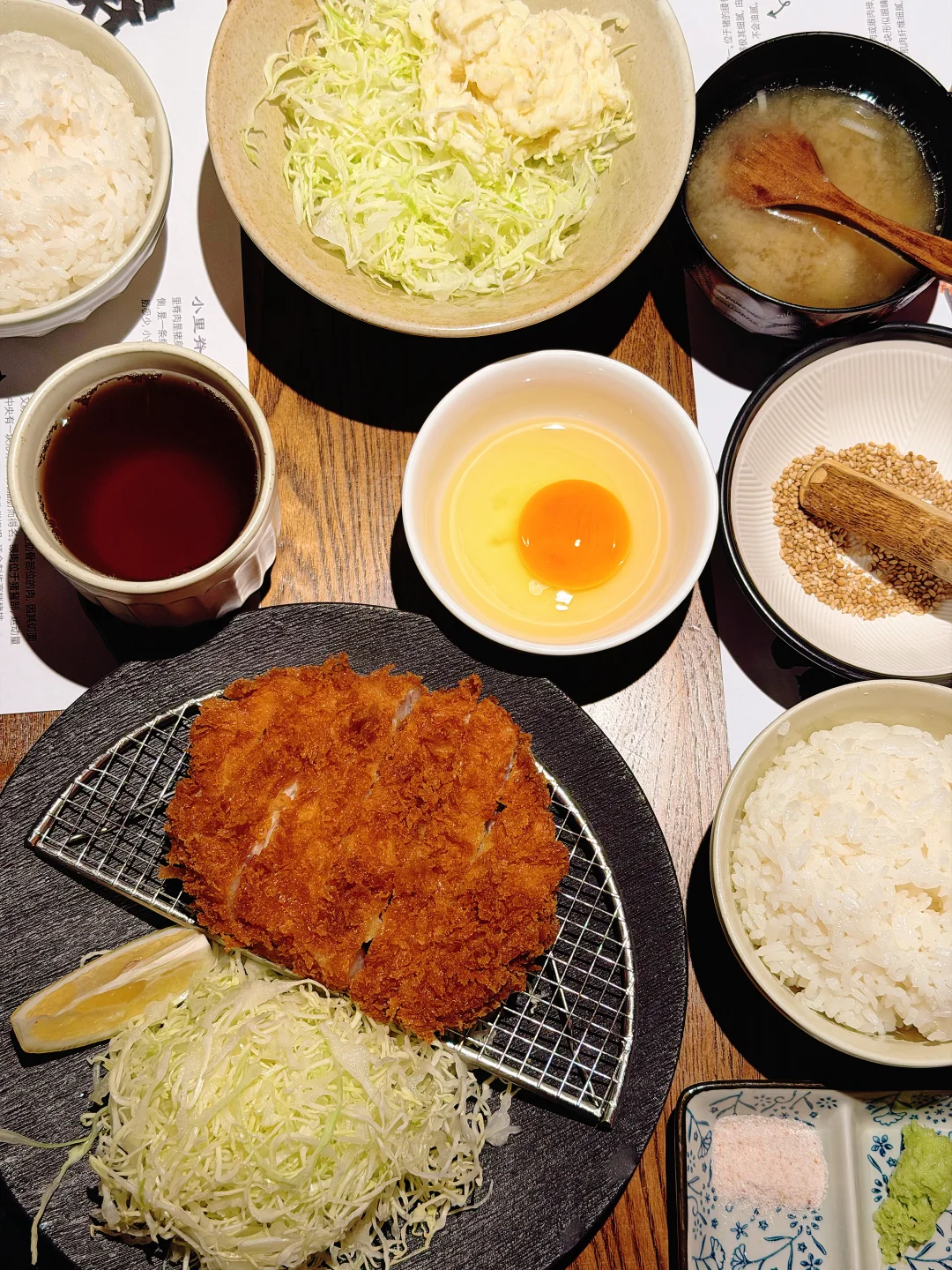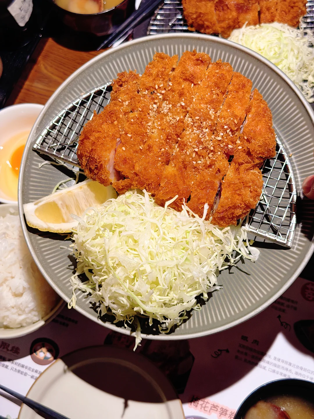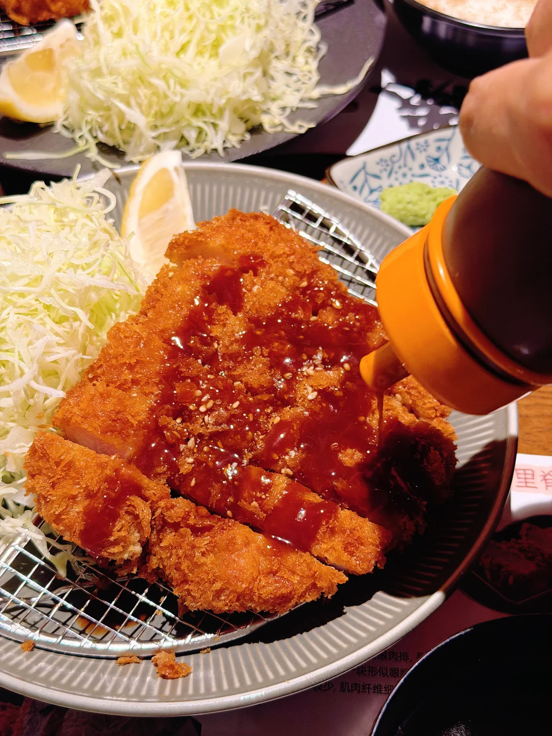 个人觉得杭州top 1的炸猪排专门店,真的好好恰,超级厚,超级满足。 特别推荐极品眼肉猪排,真的很多汁,再撒上自己磨的芝麻,一口一整香😌但是吃多了会有点腻,一定要配米饭🍚吃,直接上天 厚切的猪排会有点干,我觉得不够润,没有眼肉好吃[哇R] 他们家价格虽然会有点贵,但是猪排确实还可以,可以冲(无广纯推荐)我去的是城西银泰那家,其他不知道🤷不知道出品怎么样