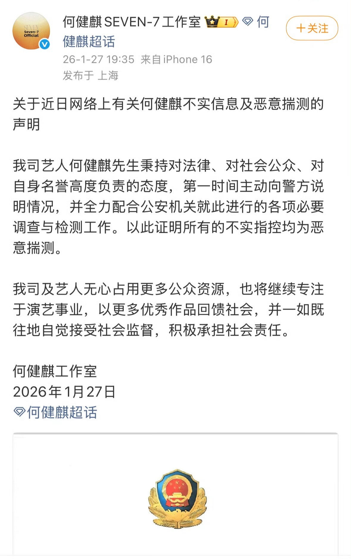 何健麒公开无犯罪记录证明,女方这边依然硬刚到底。