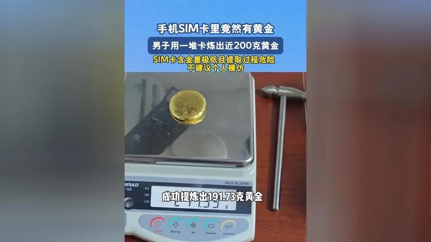 网传“男子用SIM卡炼出191克黄金”的消息,和大家想的完全不一样,这根本不是个人能做到的简单淘金,而是专业工厂做的规模化工业黄金回收,背后有整套规范流程。 这名博主其实不是用普通手机SIM卡炼金,而是用了近2吨的通信电子芯片类镀金废料,191克黄金只是其中一批的提炼成果。 普通SIM卡的含金量特别低,业内人士说一张卡仅含金0.02毫克,和网传的0.02克差了一千倍。个人想靠SIM卡炼金完全不现实,不仅收集大量卡片的成本远高于炼出的黄金价值,提炼还得用王水这类危险化学品,个人购买和操作既违法还得备案,过程中产生的有毒废料也会污染环境,做这行还需要专门的资质证书。 这位博主本身是正规加工厂,炼出191克黄金扣除各项成本后,实际利润也就约10克黄金,折合一万块左右,利润率只有5%。这种工业回收和个人炼金有本质区别,前者用的是高含金量的工业废料,以吨为单位规模化合规处理,而个人手里的废卡黄金分散、含量低,私自提炼还涉嫌违法。 这件事只是体现了电子垃圾的回收价值,普通人千万别尝试私自炼金,不仅不赚钱,还可能触碰法律、危害自身和环境,废旧电子产品最好交给正规回收渠道。 废手机换黄金 提取黄金 黄金密度测试 ai切黄金 黄金o损耗 打捞手机黄金 黄金ai