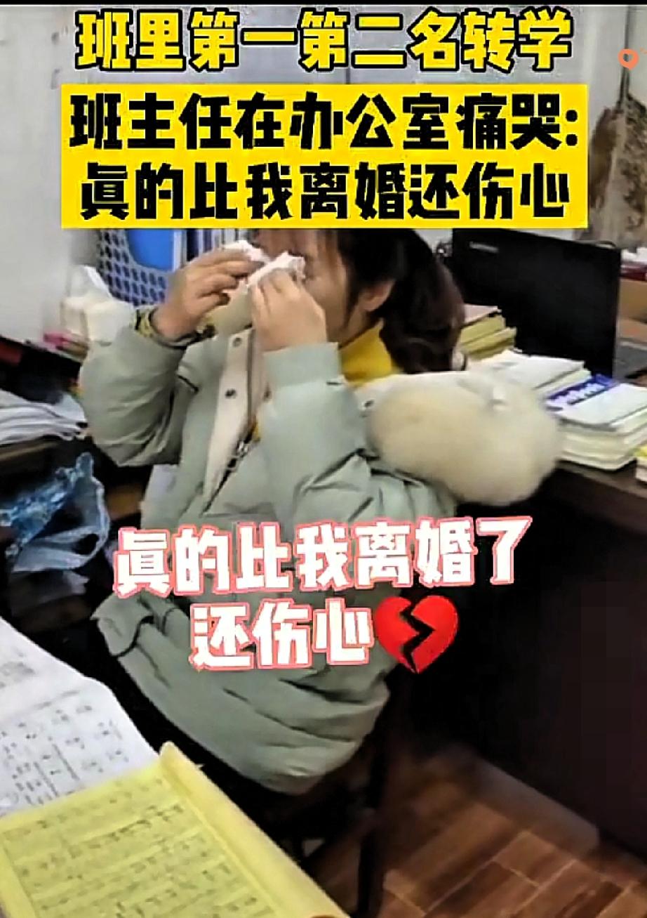 湖北女教师办公室失声大哭,直言一周内班里第一第二接连转学,这份难过比离婚还痛! 这位年轻教师超负责,把松散班级带成班风正学风浓的好集体,班里尖子生不仅优秀还带动同学,是班级主心骨,她倾注超多心血辅导陪伴,满心盼着孩子们越来越好。 可一周内两尖子生先后转学,一个因搬家一个去外地重点校,她尽力挽留却没用,送走学生后卸下坚强,在办公室崩溃大哭,满心担忧班级氛围散了、剩下孩子没了动力、成绩下滑。 她的崩溃从不是矫情,是真心把班级当孩子疼,把心血全砸在了学生身上,尖子生离开不仅是人才流失,更是她满心期待的落空。 好老师从不是只看成绩,而是把每个学生的成长放心里,用真心换真心,这份沉甸甸的责任感才最动人。 幸好她很快调整心态,会继续守着剩下的学生,重新撑起班风。 你遇过这样掏心掏肺为学生的老师吗?