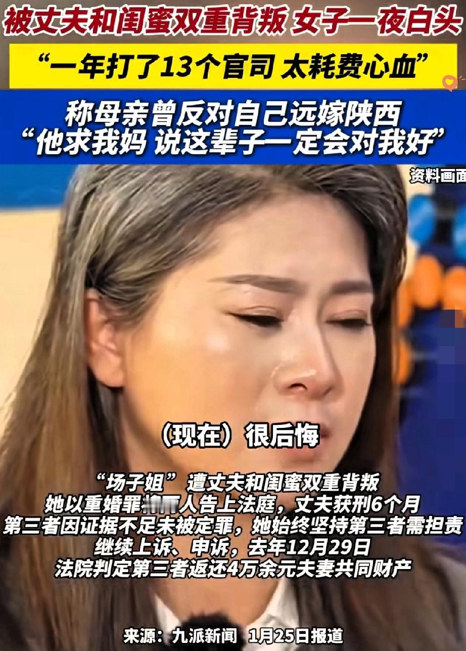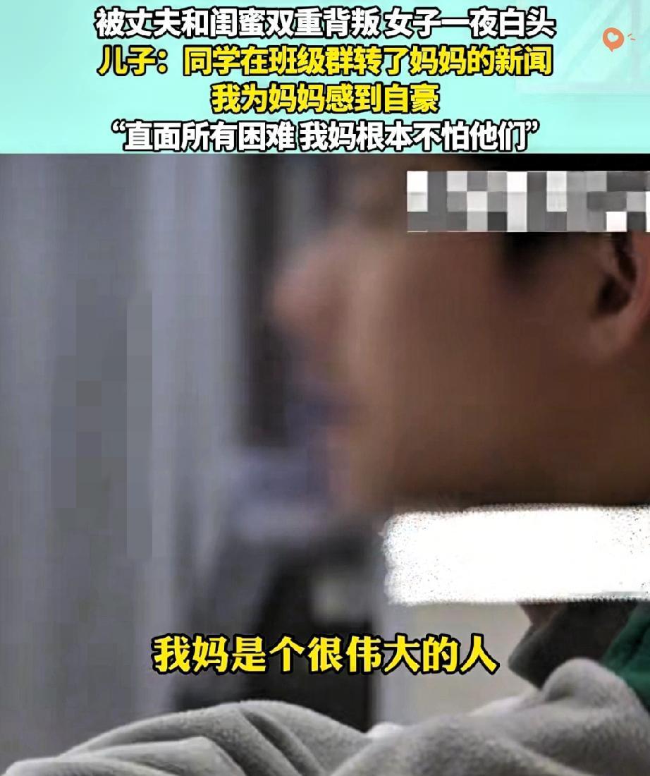 被丈夫和闺蜜双重背叛,女子一夜白头! 这剧情比电视剧还戳心,可她的硬气却让无数人佩服! 遭遇最亲近两人的联手辜负,这份打击足以压垮很多人,女子一夜白头的模样,藏着多少彻夜难眠的崩溃与绝望。 换作旁人或许早已一蹶不振,可她没有沉溺伤痛,反而挺直腰杆直面一切,这份清醒和果敢太难得。 更暖心的是儿子的态度,同学在班级群转了妈妈的新闻,他没有丝毫羞愧,反倒满心自豪,直言我妈根本不怕! 孩子的认可,是她撑下去最硬的底气。 其实背叛从不是受害者的错,而是背叛者丢了良心,真正的强大从不是不受伤,而是受伤后依然有直面风雨的勇气,不纠缠不卑微,守住自己的尊严。 女子的硬气,是对背叛者最有力的回击,也活成了儿子最好的榜样。 你觉得遭遇背叛后,最该守住的是什么?