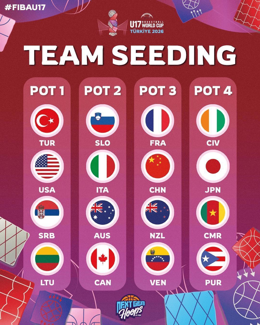 厉害!中国男篮第3档,与法国同一档次!日本第4档!2026年男篮U17世界杯将在