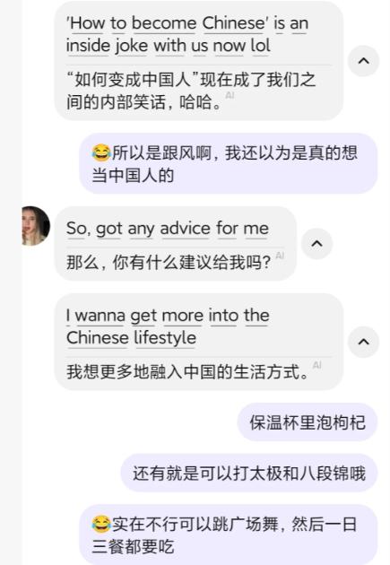 老外为什么突然间执着于当中国人了? 最近刷洋抖的时候,发现很多老外都在变得像“中国人”一点,甚至一些老外也问:我怎么样才能变得更中国人? 当我问这个美国姐妹为什么想当中国人的时候,她跟我说这是一种梗。 在他们的网络上有一个叫Sherry的中国女生在教他们怎么当一个地道的中国人,所以现在跟拍这个成了潮流。 感觉也挺好的,毕竟老外的一些生活方式确实不健康。