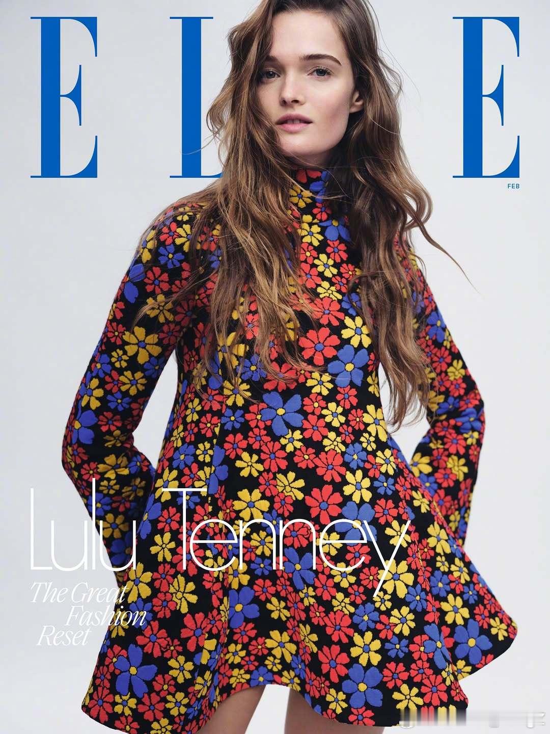 美国版 ELLE 二月刊,超模 Lulu Tenney 身着 CELINE 春夏系列花朵印花连衣裙亮相封面。摄影:Nathaniel Goldberg