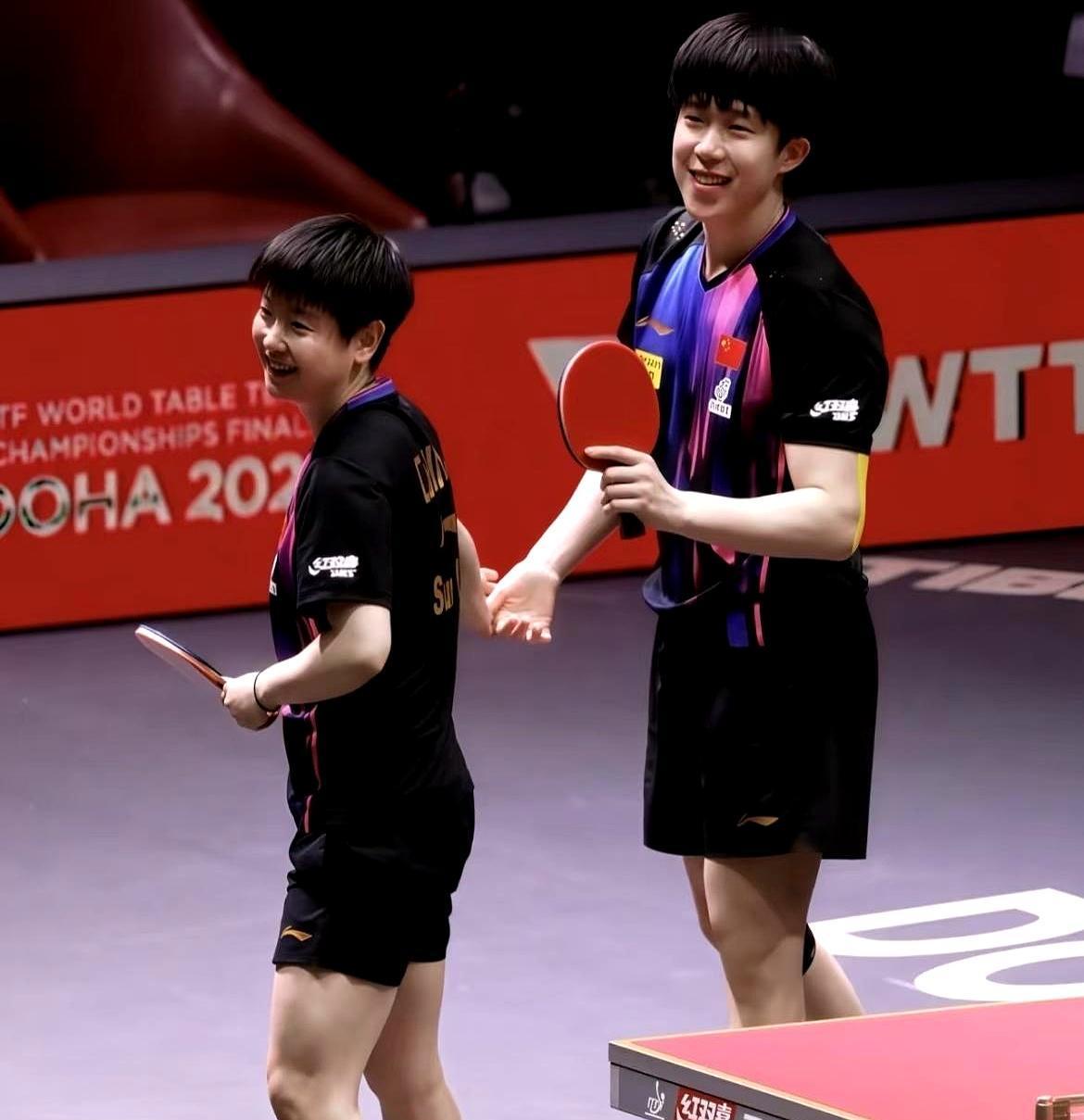 王楚钦,粉丝叫他“头哥”,场上凶,场下被孙颖莎拿捏。 孙颖莎,人送外号“莎哥