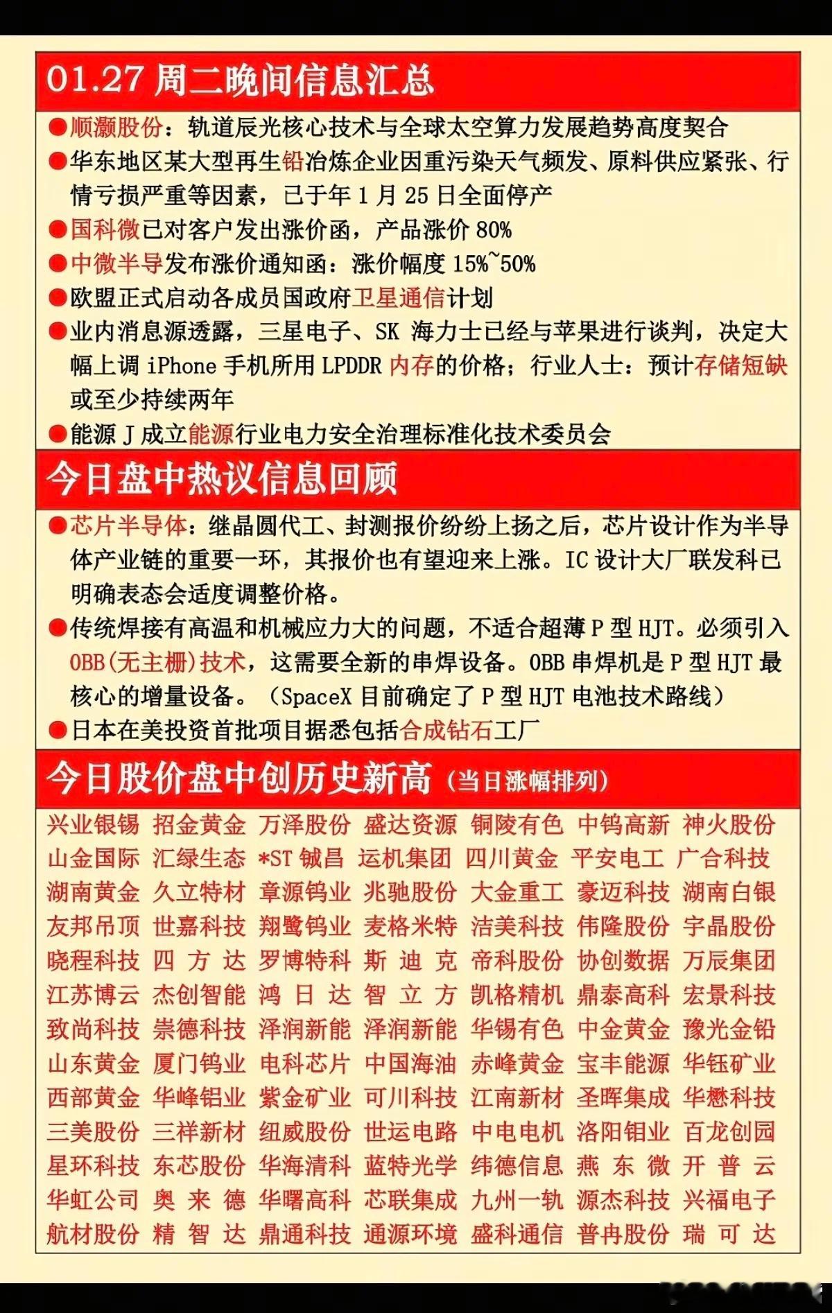 1.27周二晚间财经信息汇总!1.太空算力2.存储芯片涨价3.新能源4.卫