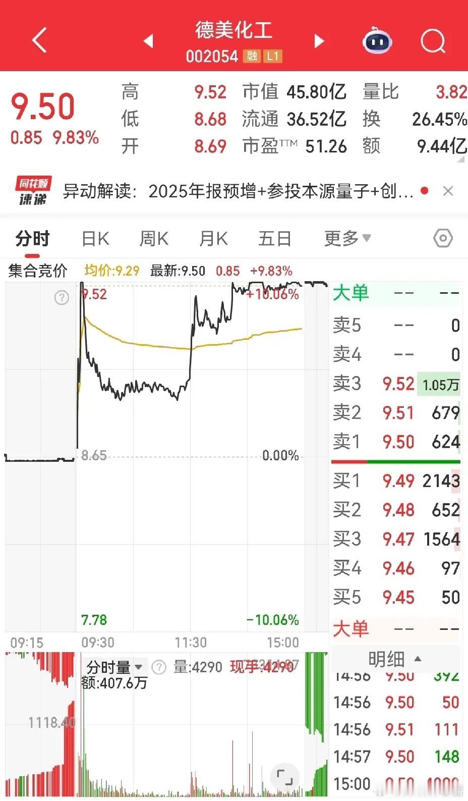 德美化工为持续跟踪关注标的,今日本有布局意向,因持仓久其软件未及时关注,错失操作窗口。该股今日开盘后快速冲板随即回落,午盘阶段再度拉升,午后始终在涨停价附近震荡,全天走势偏于勉强,量能与承接力度均存隐忧,后续走势需保持谨慎观察。珠海中富从基本面来看并无突出亮点,日常仅作趋势跟踪,如同观察盆栽般保持关注即可,暂不具备操作价值。该股今日尾盘出现拉升动作,结合近期走势来看,场内资金或存急切离场意愿,短期走势不确定性增加,次日低开风险值得警惕。