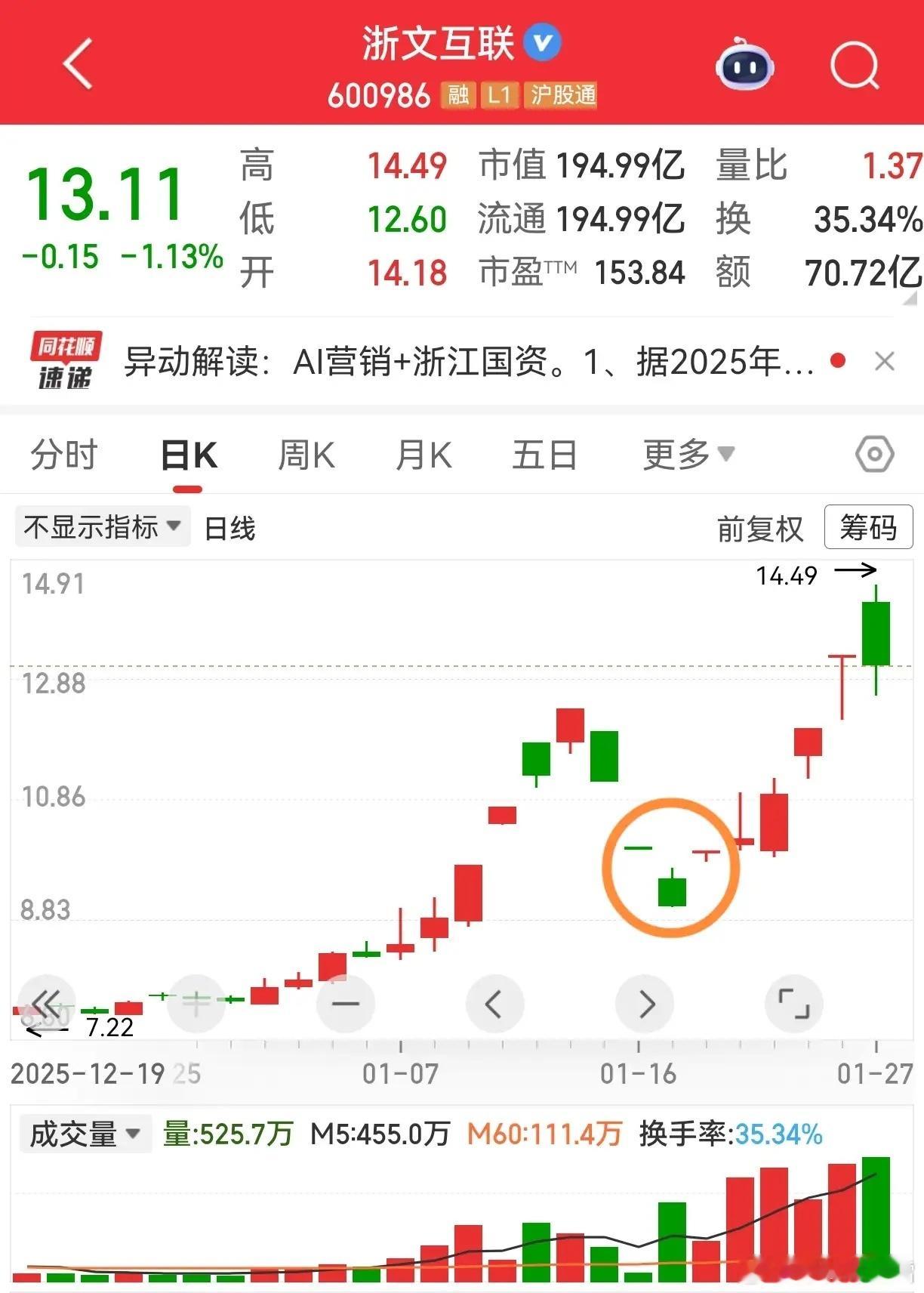 有朋友问浙文互联,这票的技术形态还挺有看头,刚好补上之前忙忘了的分析前期四天三
