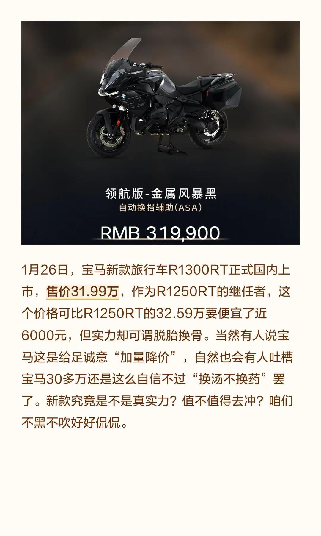 宝马R1300RT上市售价31.99万。宝马R1300RT上市,售价31.99万,比1250RT便宜6千,到底改了什么摩托车 宝马r1300rt