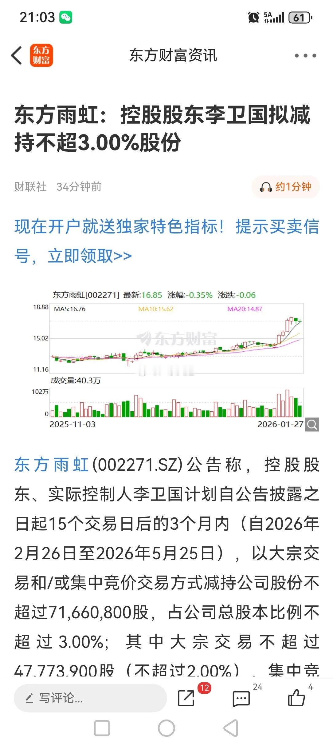 晚间市场传来三大重要消息,或影响明天A股相关走势。消息一, 有关部门了公布修订后的《中华人民共和国药品管理法实施条例》。这有助于加强药品专利保护,有助于加强药品管理,有助于加强药品监督。消息二,内蒙古发布信息称,个人购买手机、平板、智能手表手环、智能眼镜等4类产品, 给予15%补贴。这有助于为消费者带来一定的消费福利,有助于刺激各类电子产品消费,满足各类消费者需求。消息三,东方雨虹发布公告称,控股股东李卫国拟减持不超3.00%股份。公司大股东减持自家公司股份,或影响投资者信心 。对此你们怎么看?