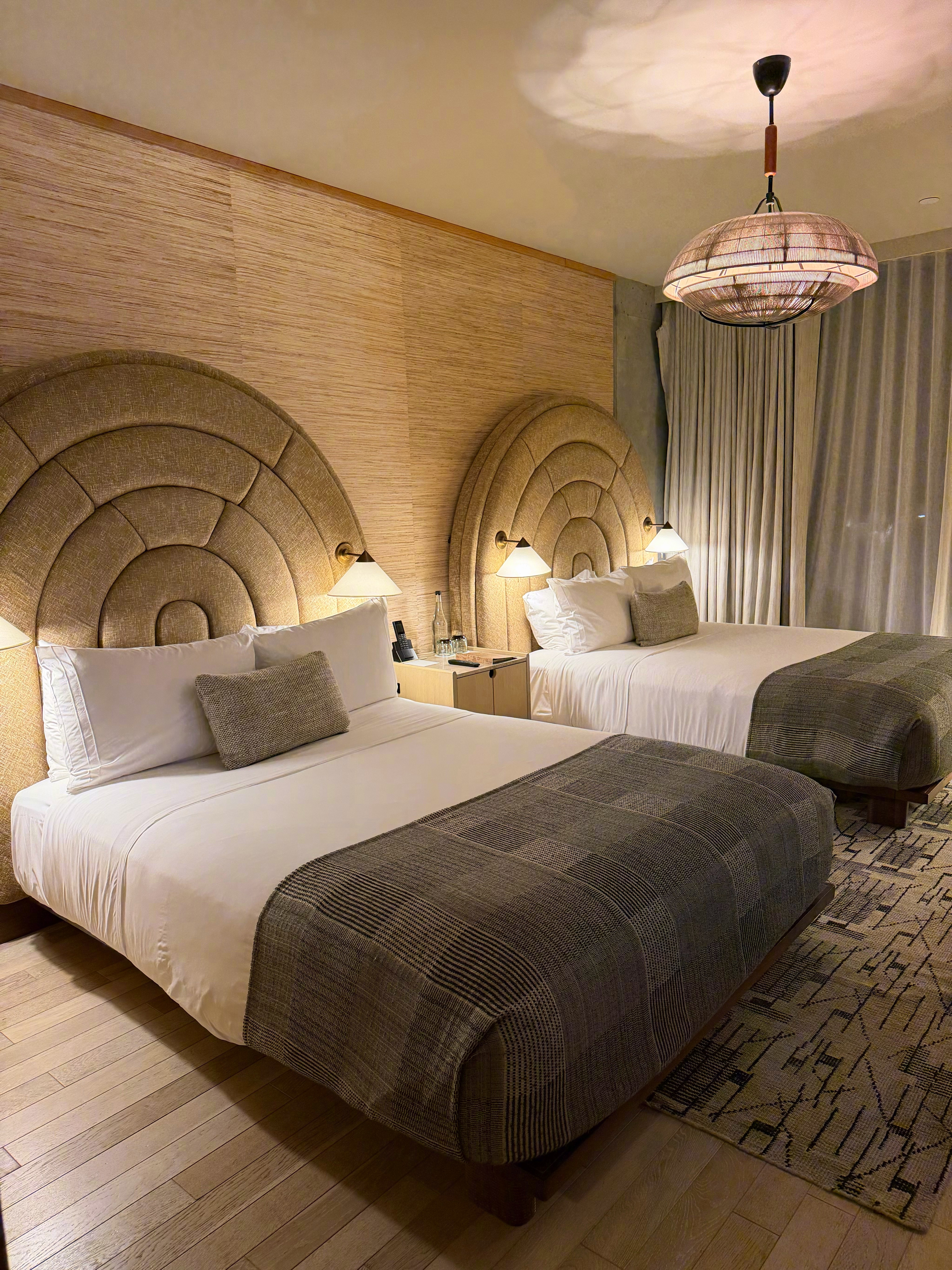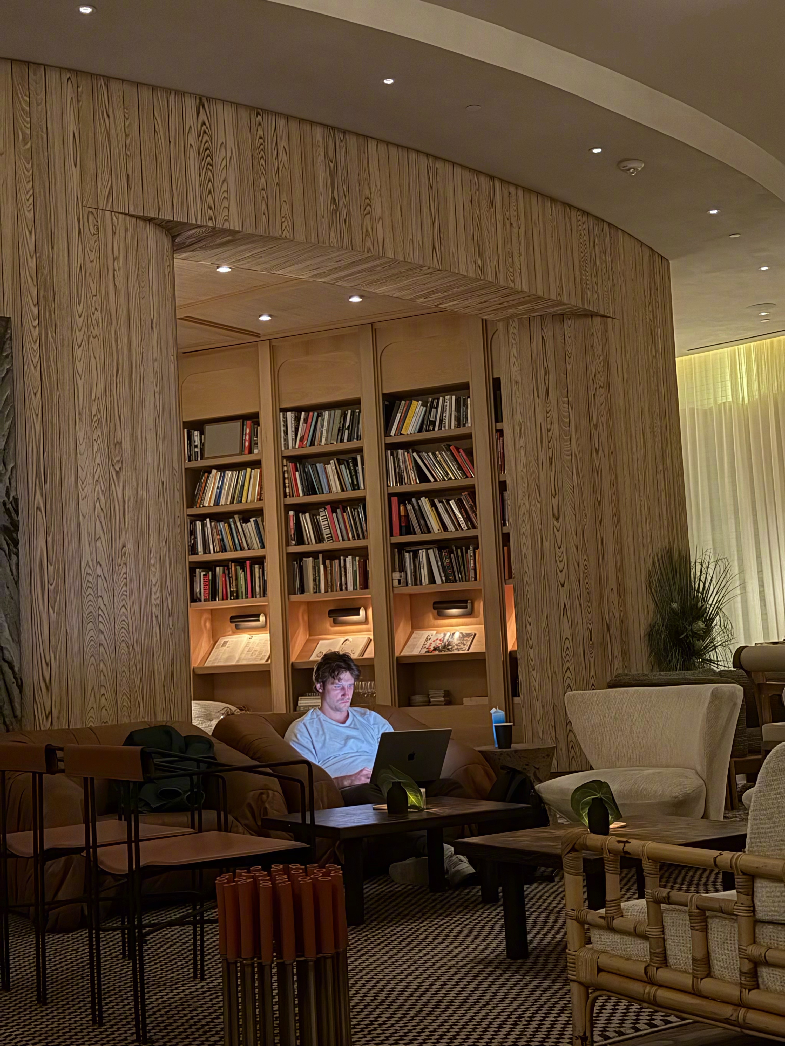 抵达洛杉矶✨来参加苹果的 Apple Creator Studio 活动房间里放了一盒巧克力,这种细节一出现,大概就知道这趟行程不会太累,连炫三颗~是夹心滴好吃!酒店很原生态,像住进山洞了。叫Santa Monica Proper。灯光是我见过所有酒店最暗的,大堂白天看着都像晚上。每次白天从电梯出来,加州的阳光直接怼脸,和室内形成一个特别夸张的光比,好反差hh在酒店里看到一株毛茸茸的大植物(图8),查了一下叫吊鸟,也叫毛绒蝎尾蕉,原产哥伦比亚。这种植物好啊,对我这种植物杀手来说直接养干花就不用考虑死活了哈哈哈哈