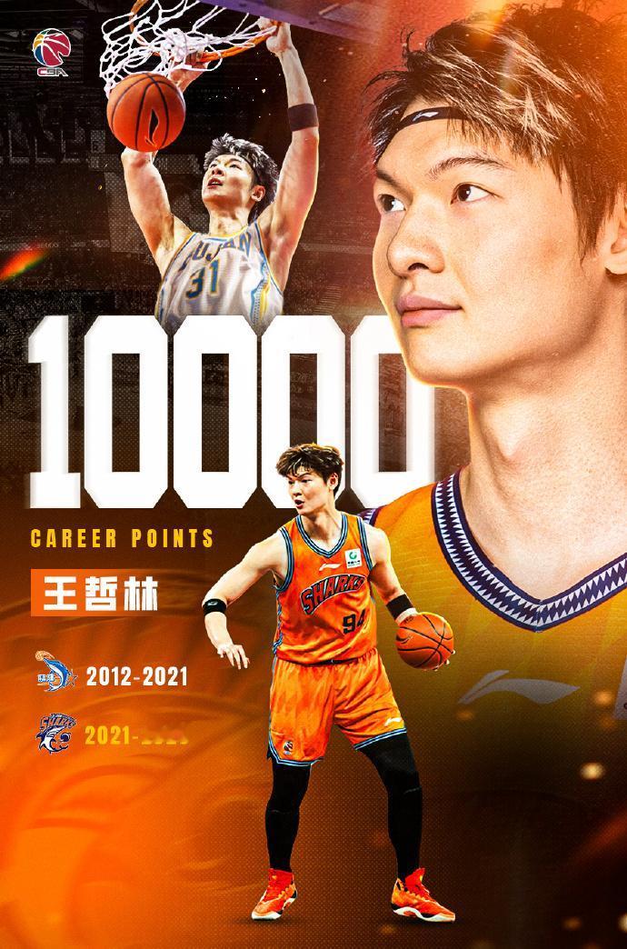CBA历史总得分榜: 1、哈德森——13076 2、易建联——12781 3、朱芳雨——11165 4、多米尼克·琼斯——12241 5、刘炜——10147 6、王哲林——10000 7、王治郅——9688 8、胡金秋——9213 9、唐振东——9087 10、郭艾伦——8823 王哲林成为CBA历史第6个10000分先生,也是本土第4人,仅次于易建联、朱芳雨和刘炜。 而王哲林目前距离刘炜也只有147分的差距,本赛季王哲林场均12分,不受伤的情况下,本赛季就能完成对刘炜的超越。 而大秋目前距离10000分也不远了,本赛季场均16.4分,787分的距离,需要48场,只要没有伤病影响,下赛季就有希望超越10000分,成为历史第7个10000分先生。