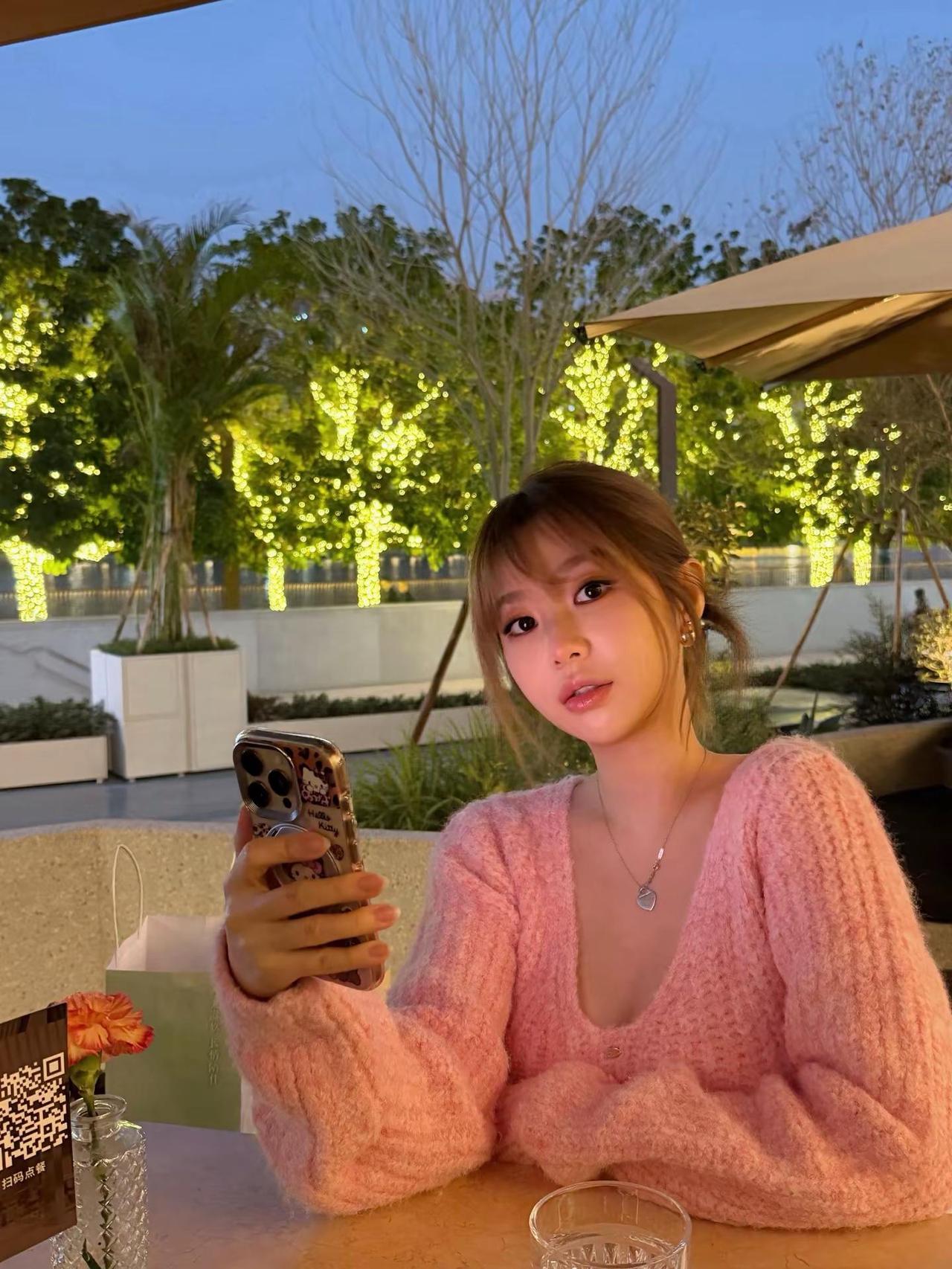 温柔粉嫩少女风,粉色毛衣搭配蕾丝围巾,甜美动人!💖✨