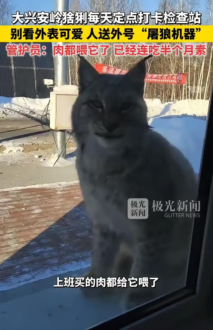 笑不活了!黑龙江大兴安岭,一只猞猁经过检查站时,工作人员看它可怜,就投喂了一块生肉,万万没想到,自此以后猞猁每天都会来定点打卡,但这就苦了检查站的工作人员了,他表示:这点肉都喂它了,自己都吃了半个月的素了。 谁能想到,大兴安岭的深山里,一场投喂能喂出个“通勤王者”。这只猞猁每天下午三点准时蹲在检查站门口,圆滚滚的身子往木板上一坐,自带一股“今天的肉准备好了吗”的气场。工作人员一开始还觉得新奇,毕竟能跟“屠狼机器”做邻居,说出去都带劲儿。可没几天就笑不出来了,每天上班带的五花肉、酱牛肉,还没进自己的锅,先进了猞猁的肚子。现在打开饭盒,清一色的白菜豆腐,连个油星子都难找。 要知道,猞猁可不是什么温顺的大猫。它是国家二级保护动物,属于中型猛兽,体长能到一米三,体重四五十斤,四肢粗短有力,耳朵上那撮标志性的黑毛,不仅是萌点,更是用来收集声波的“雷达”。它们天生是北方针叶林里的顶级猎手,反应迅猛、耐力超强,能捕杀比自己重几倍的狍子,甚至敢跟狼群周旋,“屠狼机器”的外号可不是白来的。平时独来独往,领地意识极强,靠着敏锐的视觉和听觉在雪地里潜行,连狐狸、野兔都逃不过它的伏击。 很多人被它毛茸茸的模样迷惑,觉得它像大号家猫,实际上猞猁对人类存在明确的潜在威胁。虽然通常情况下,野生猞猁会主动避开人类,但一旦感受到威胁、护食或者幼崽受到惊扰,就会发起攻击。它的爪子锋利如刀,一爪就能划开皮肤、撕裂肌肉;犬齿可以轻易咬断猎物的脖颈,若是攻击人类,轻则造成重伤,重则危及生命。近年来,国内外都有猞猁闯入村庄、袭击家畜甚至伤人的记录,绝非可以随意亲近的动物。 这只猞猁之所以敢天天蹲点讨饭,说白了就是摸准了人类的脾气。它算准了换班时间,换谁值班都不耽误讨饭,那眼神瞟过来,毛茸茸的耳朵一耷拉,任谁都狠不下心赶它。有网友调侃,这哪里是猛兽,分明是蹲点要饭的“山大王”。但玩笑背后藏着实打实的风险,猞猁再萌也是野生动物,野性从未消失。长期投喂会让它彻底依赖人类,丧失野外捕食能力,哪天没人喂了,它要么饿死,要么被迫闯入人类聚居地觅食,反而会引发更大的冲突。更危险的是,当它习惯了人类的存在,可能会把人类当成“移动的饭票”,一旦投喂中断,就可能直接攻击人类索取食物。 其实人类不该主动接触野生猞猁。保持安全距离,既是保护自己,也是保护它们。真正的生态保护,不是把猛兽养成宠物,而是让它们留在自己的生存链条里。就像这只猞猁,本该在山林里追逐猎物,却因为几块肉变成了“食堂常客”,看似温柔的互动,正在悄悄改变它的野性。工作人员自己都吃不上肉,也反映出这种“爱心投喂”的不可持续性。毕竟保护野生动物,从来不是靠一时心软,而是要让它们留在自己的生态位里。 还有人说,这猞猁是把检查站当成了“食堂”,人类却成了“冤种饭搭子”。细想下来,这更像一场温柔的博弈——动物用可爱绑架了人类的同情心,人类用投喂模糊了野生与驯养的边界。我们总觉得“喂一口”是善意,却忘了对野生动物来说,学会自己找饭吃才是最重要的生存技能。 各位读者你们怎么看?欢迎在评论区讨论。