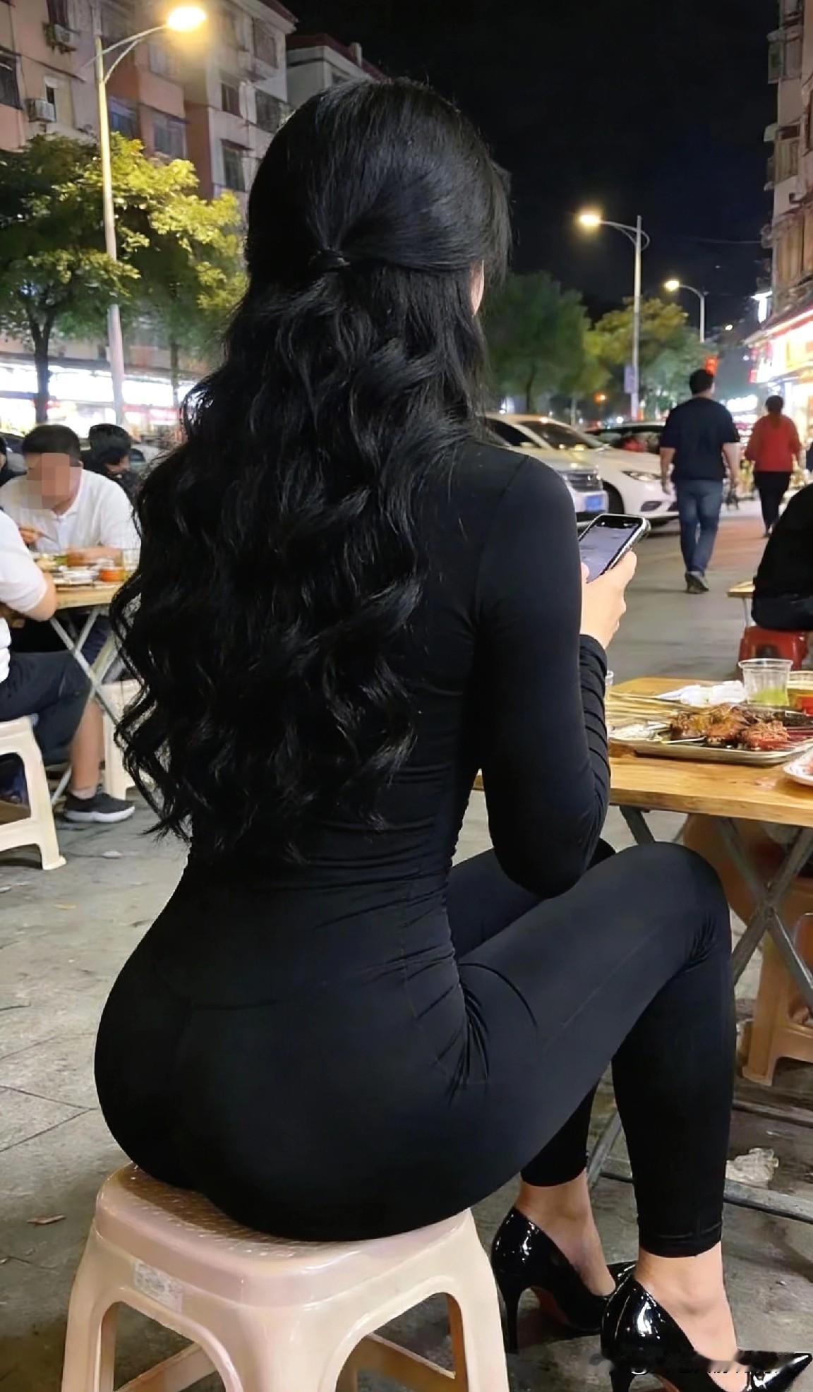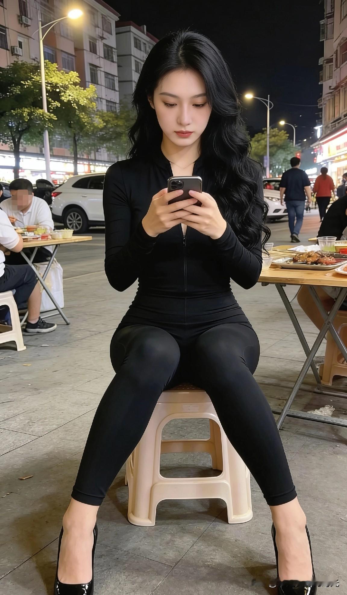 夜晚街边小聚,手机相伴,享受美食与时光。