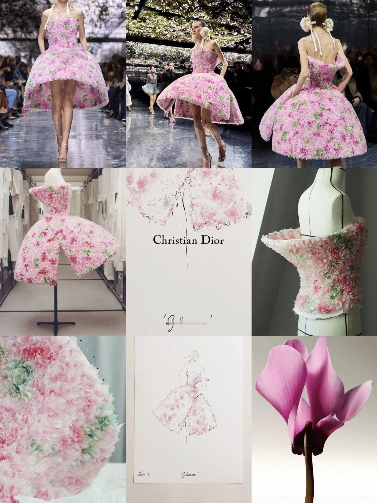 迪奥Dior出品必属仙品✨花卉设计一直都是Dior设计师钟爱的主题,2026春夏高定系列花卉元素也贯穿其中。大秀压轴出场的这套Cyclame的Look,灵感来源于John Galliano赠予创意总监Jonathan Anderson的仙客来花束,优雅仙气的设计宛如其名,仙客偏偏而至。密集手工刺绣覆盖立体花朵🌺让点缀全身的花朵灵动自然,一直精致到耳畔。娇嫩的粉搭配平静的绿,开出旺盛的生命力,呈现轻盈又繁复的设计美学,看完已经开始期待春天的到来了Dior Dior礼裙 Dior 迪奥走秀款 迪奥大秀 迪奥 迪奥二零二六春夏高订秀 高定设计 时装设计 设计美学 迪奥花卉 审美积累 审美提升 优雅自信穿搭分享 怎么穿出高级感