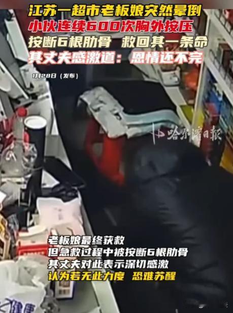 江苏苏州,张先生去超市购物,老板娘爽快抹去一块钱零头,两人多聊几句时,意外突生,老板娘突然晕倒失去意识。张先生迅速拨打120,在急救中心指导下,他进行15分钟胸外按压,成功救回老板娘,却按断其6根肋骨。老板娘家人得知后,不仅没责怪,还表示这份恩情永远还不完。 (来源:红星新闻、大象新闻、哈尔滨日报) 据报道获悉,张先生是附近小区的常客,常去小区门口的超市买日用品。超市老板娘是个热情爽快的人,一来二去,两人虽不算深交,但也混了个脸熟。 那天,张先生像往常一样走进超市,挑了些生活用品。结账时,老板娘笑着抹去了一块钱的零头,还和他多聊了几句家常。 正说着,老板娘突然脸色煞白,身体摇晃起来,接着就直挺挺地晕倒在地,没了意识。 张先生一下子慌了神,但很快镇定下来。他赶紧打了120,电话那头急救人员了解情况后,指导他进行胸外按压急救。 张先生顾不上许多,按照指示跪在老板娘身旁,双手交叠,开始用力按压。 才按了几分钟,张先生就感觉手臂酸痛不已,汗珠不停地从额头滚落,可他不敢停,心里只有一个念头:一定要撑到救护车来。时间一分一秒地过去,每一秒都像一年那么漫长。 15分钟后,救护车终于呼啸而至。医护人员迅速接手,将老板娘拉走救治。。 经过一番抢救,老板娘脱离了生命危险,但检查结果却让张先生心里一紧:老板娘断了6根肋骨。原来,是他在急救时的胸外按压导致了这一结果。 很快,老板娘的家人听说后,没有丝毫责怪张先生的意思。老板娘的丈夫还对张先生感激地说:要不是你及时出手,我老婆可能就没了,救命比骨折重要,这份恩情我们永远还不完。 有人担心张先生会因此被老板娘家人索赔,毕竟断了6根肋骨可不是小事。张先生心里也有些忐忑,虽然自己是出于好心救人,但万一被要求赔偿,那可真是有理说不清了。 根据《民法典》第一百八十四条规定:因自愿实施紧急救助行为造成受助人损害的,救助人不承担民事责任。 张先生的行为,属于典型的自愿紧急救助。 当时老板娘突然晕倒失去意识,情况十分危急,如果不及时进行急救,很可能会危及生命。 张先生打了120后,按照急救人员的指导进行胸外按压,这是为了挽救老板娘的生命而采取的必要措施。 虽然他的按压行为导致了老板娘6根肋骨骨折,但这并不是他故意为之,也不存在重大过失。 在那种紧急情况下,张先生并非专业的医护人员,他只能按照急救人员的指导尽力施救。 肋骨骨折是在急救过程中可能出现的合理风险,不能因为出现了这样的结果就要求救助者承担责任。 法律之所以做出这样的规定,就是为了鼓励人们在面对他人紧急危难时,能够勇敢地伸出援手,而不必担心因为救助行为可能带来的法律风险。 如果因为害怕承担责任而选择袖手旁观,那么很多生命可能会因此逝去,社会的温暖和互助精神也会受到极大的损害。 老板娘家人深知张先生的救助行为,对老板娘的生命意味着什么。他们对张先生的感激之情是发自内心的,也体现了他们通情达理、懂得感恩的品质。 如果老板娘家人不顾事实,强行要求张先生赔偿,不仅违背了法律的规定,也会让做好事的人心寒。 这样的行为,可能会导致以后在遇到类似紧急情况时,没有人再愿意挺身而出。 有网友提出疑问:如果救助者在救助过程中因为操作不当导致受助人受到更严重的伤害,救助者是否还需要承担责任呢? 根据法律规定,救助者承担责任的前提是存在故意或者重大过失。如果救助者是出于恶意,故意对受助人造成伤害,那么当然要承担相应的法律责任,这可能涉及到故意伤害罪等刑事犯罪。 如果是重大过失,比如救助者完全没有按照基本的急救常识进行操作,导致受助人受到严重伤害,这种情况下救助者也可能需要承担一定的民事赔偿责任。 但在实际操作中,要证明救助者存在重大过失并非易事。因为紧急救助往往发生在突发情况下,救助者可能没有足够的时间和条件进行充分的准备和判断。 而且,不同的人对急救知识的掌握程度也不同,不能以专业医护人员的标准来要求普通救助者。 张先生按照急救人员的指导进行救助,不存在故意或者重大过失的情况,所以不需要承担法律责任。 张先生的勇敢救助和老板娘家人的感恩之心,都值得我们点赞。 大家对这件事有什么看法呢?欢迎在评论区留言讨论。