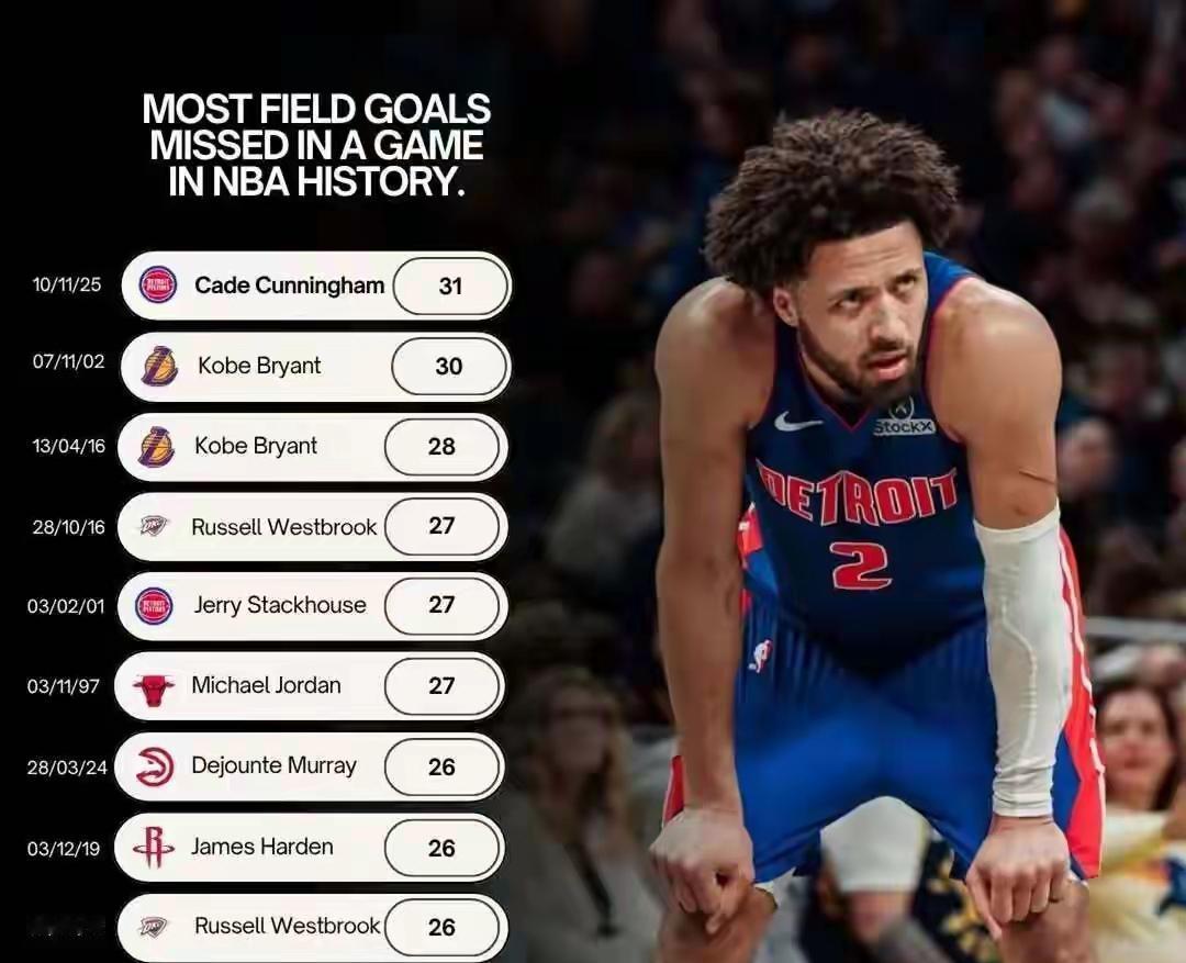 谁都不想去碰!NBA十大最尴尬历史纪录: 1,基德,单场失误14次,2000年11月太阳对森林狼的比赛中,砍下18分12篮板10助攻14失误另类四双。 2,坎宁安,单场打铁31次,全场45投14中超1747科比登顶现代NBA铁王。 3,蒂姆.哈达威,17投0中,1991年12月勇士对森林狼出场44分钟,仅靠罚球拿到2分。 4,奥尼尔,单场连续11罚0中,2000年12月湖人对超音速(现雷霆),生涯罚球命中率仅52.7%。 5,拉希德华莱士,单赛季(00/01)41次技犯,生涯29次被驱逐出场,并创下85秒内连吃两T的纪录。 6,哈威二少,单场联手打铁50次,19年12月火箭对马刺比赛中,哈登38中11,威少30中7。 7,雷霆队,单场79:152狂输灰熊73分,本场雷霆多位主力休战,首发五虎总薪资合计仅1200万美元。 8,黄蜂(现鹈鹕)队,单场季后赛狂输58分,09年季后赛黄蜂63:121惨败掘金,蜂王保罗7中2拿到4分6失误。 9,勇士队,单节2分,04年2月对猛龙第4节,勇士全队13中1,罚球3中0仅得2分,最终被猛龙拖入加时逆转。 10,活塞队,单赛季(2023/24)28连败,仅过两年,活塞就在新帅比克斯塔夫的带领下杀到东部第一。