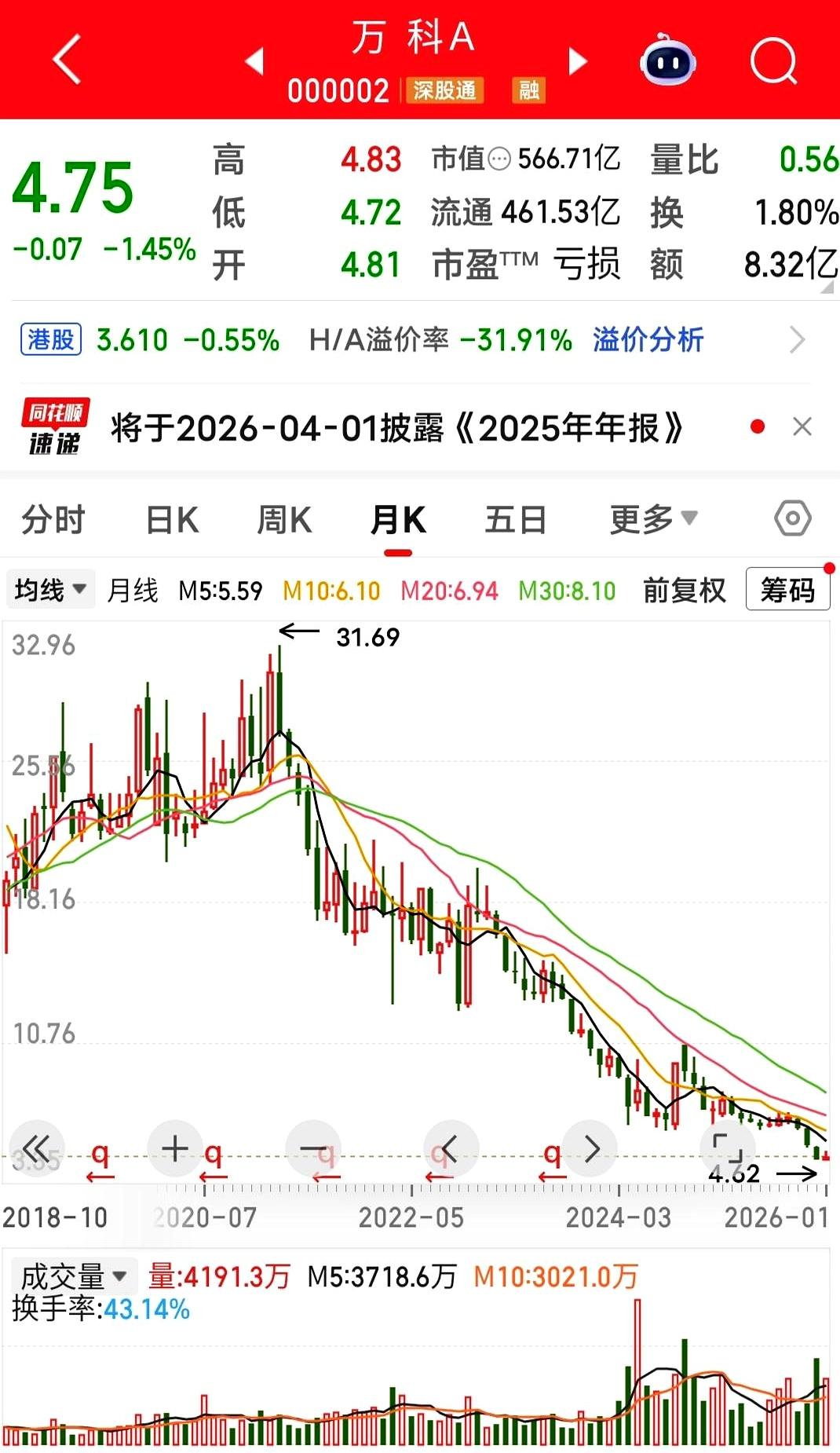 刚才看到个数据,直接给我整无语了。 31块买入,跌到4.75块,本来30多万的本