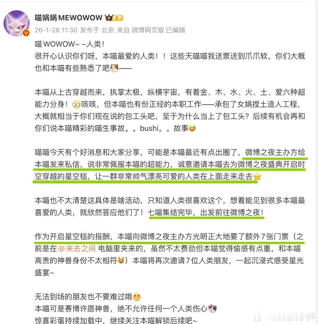 微博之夜 星空毯 喵娲娲这次是懂浪漫的!把银河铺成红毯,让每一次亮相都像漫步在星际。这不仅仅是一条路,更是一个充满无限可能的闪耀舞台,期待艺人们在这里留下属于自己的星座轨迹。
