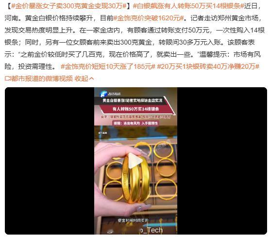 金价暴涨女子卖300克黄金变现30万 每天看着这些新闻...真的,暴富也要看时机