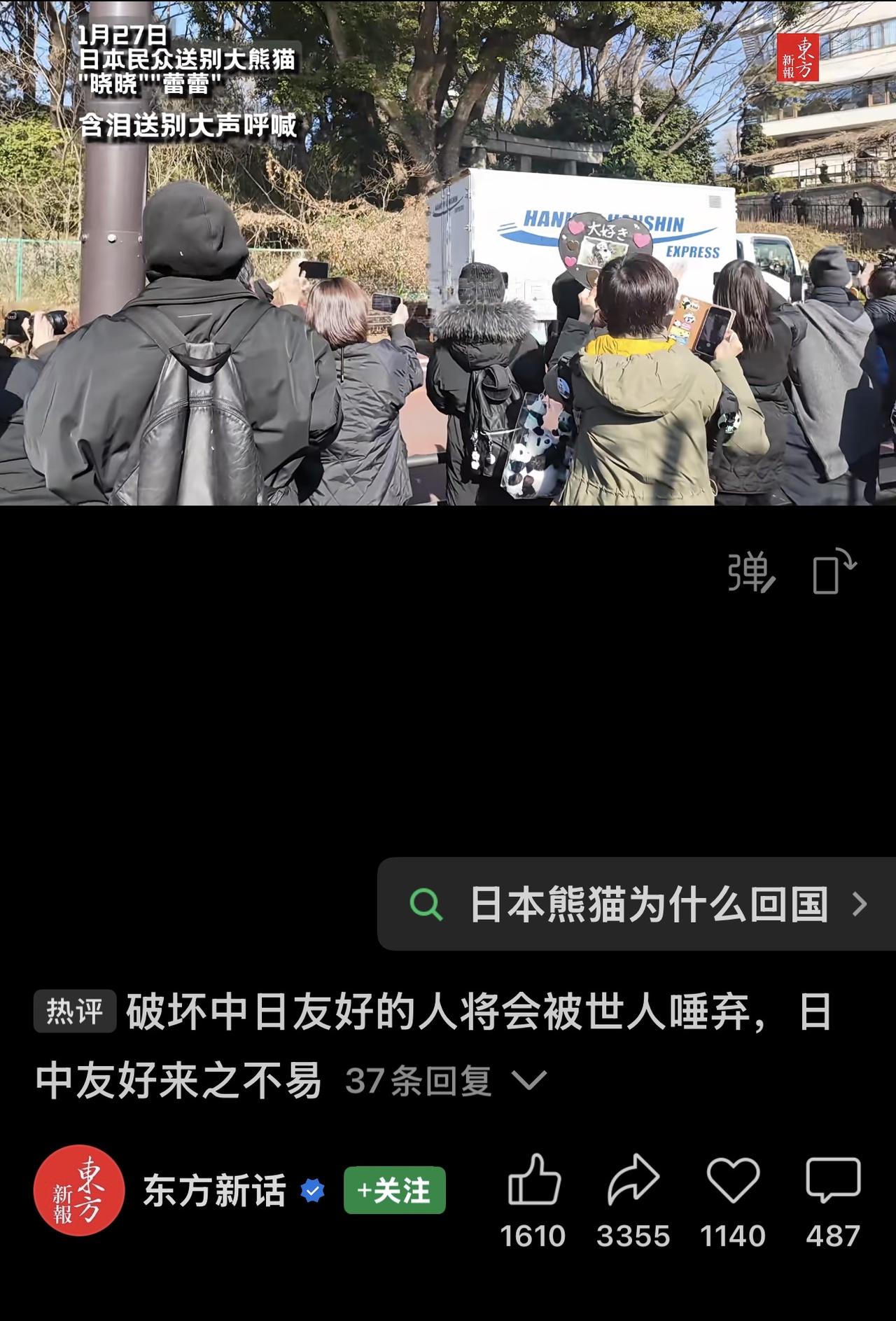 中国最后一对在日本的“国宝”启程回国 它们的离开意味着日本暂时进入无熊猫时代,这也是1972年中日邦交正常化以来的首次。