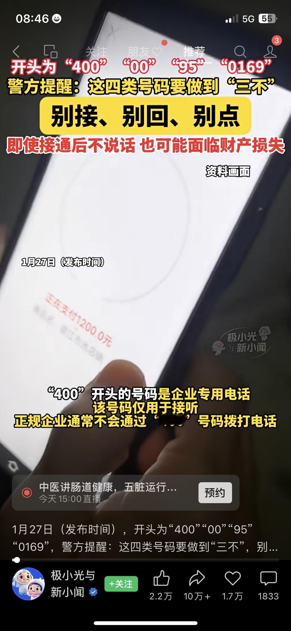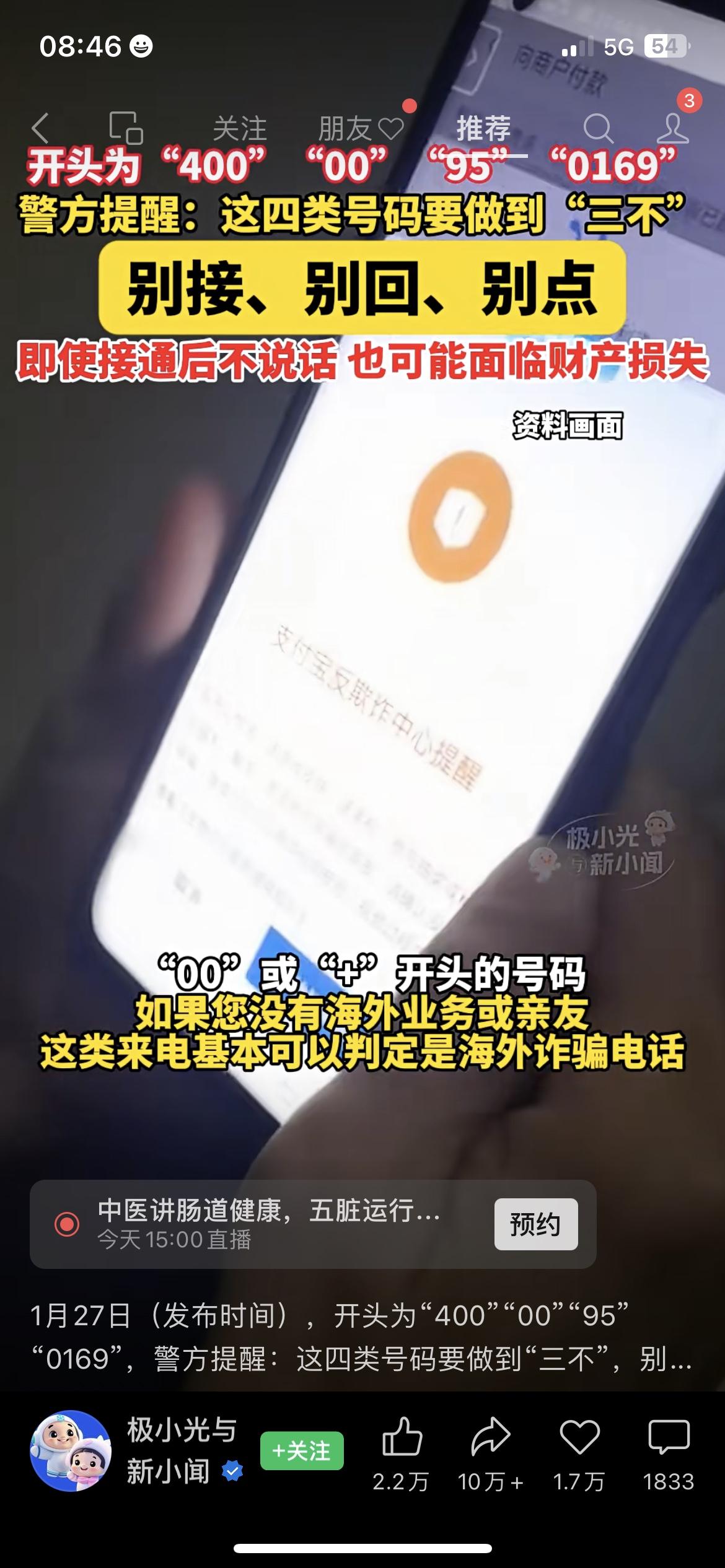 反诈预警 民生安全 财产保护 警方提醒 紧急预警!这些电话别接!一回应就可能被骗! 警方最新硬核提醒,400/00/95/0169开头的陌生电话千万别乱接!一旦回应、回拨或按对方要求操作,极易陷入诈骗圈套,银行卡里的钱可能被隔空转走! 记住三字保命口诀:别接、别回、别点,看到直接拉黑,血汗钱可别栽在骗子手里! 你最近接到过这类陌生诈骗号码吗?