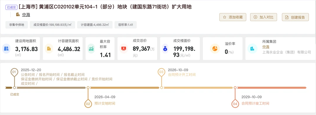 “中海/永业”以超20万/㎡的成交楼面价,拿下了黄浦区建国东路71街坊地块! (图2)