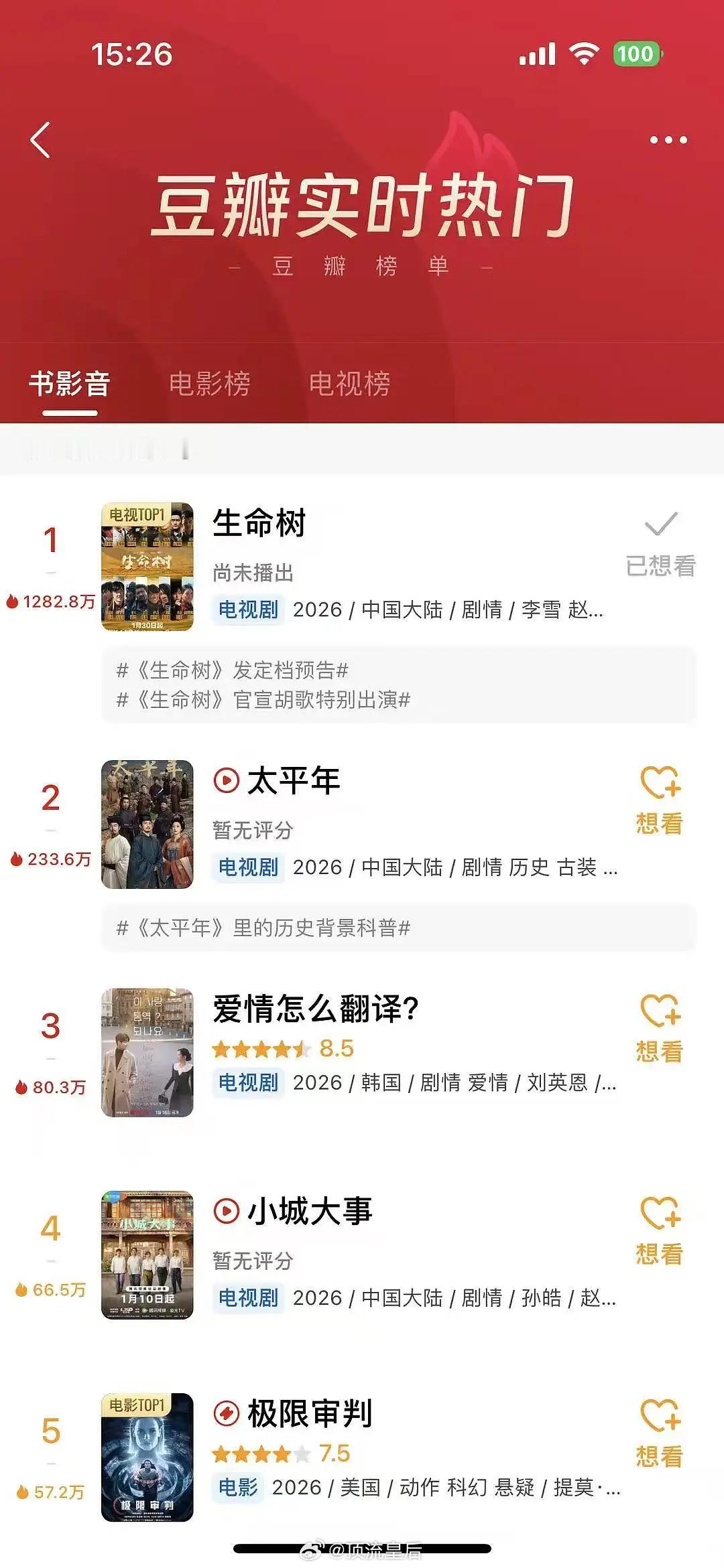 生命树四平台四榜单登顶,杨紫播剧阵仗恐怖如斯,太给力了。