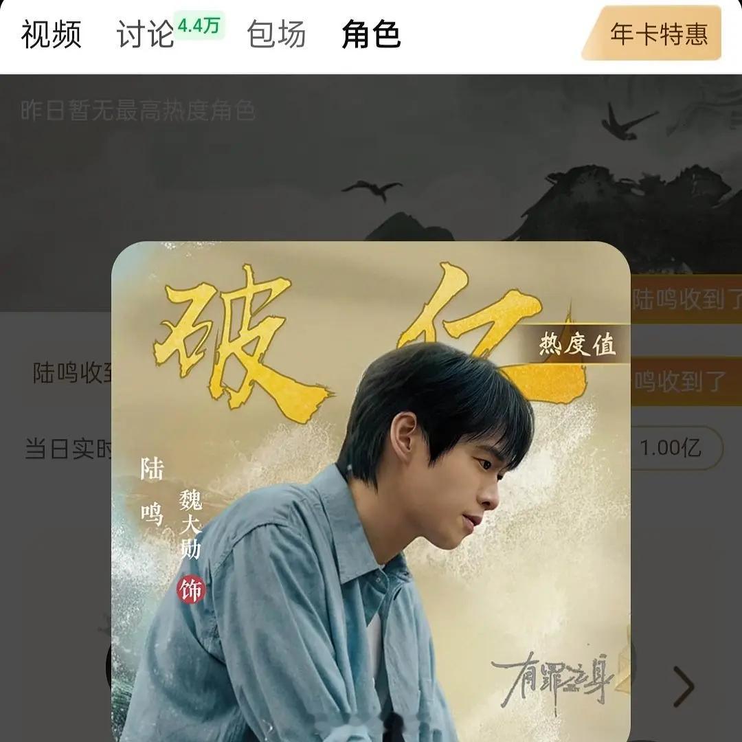 恭喜有罪之身开播4小时魏大勋陆鸣角色热度破亿!