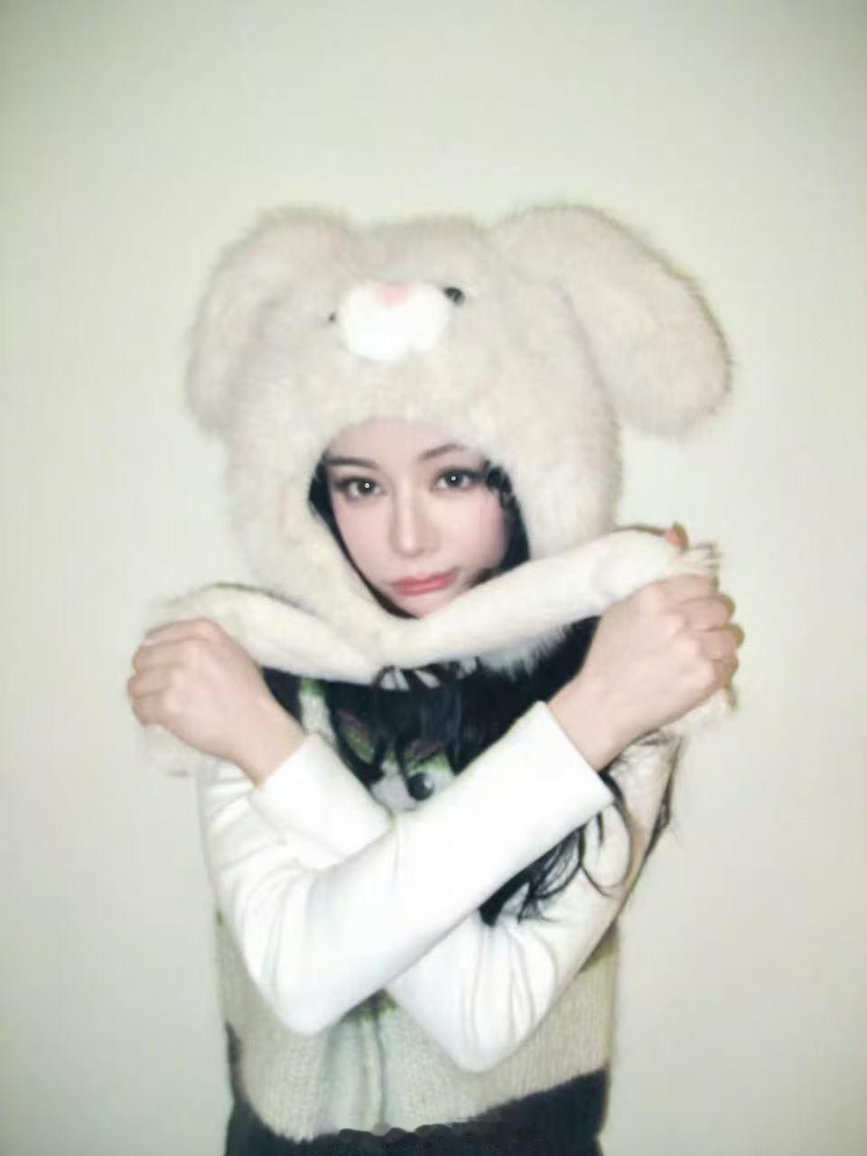 迪丽热巴毛茸茸兔子返场迪丽热巴兔子帽毛茸茸返场迪丽热巴毛茸茸返场啦~完全就是小兔