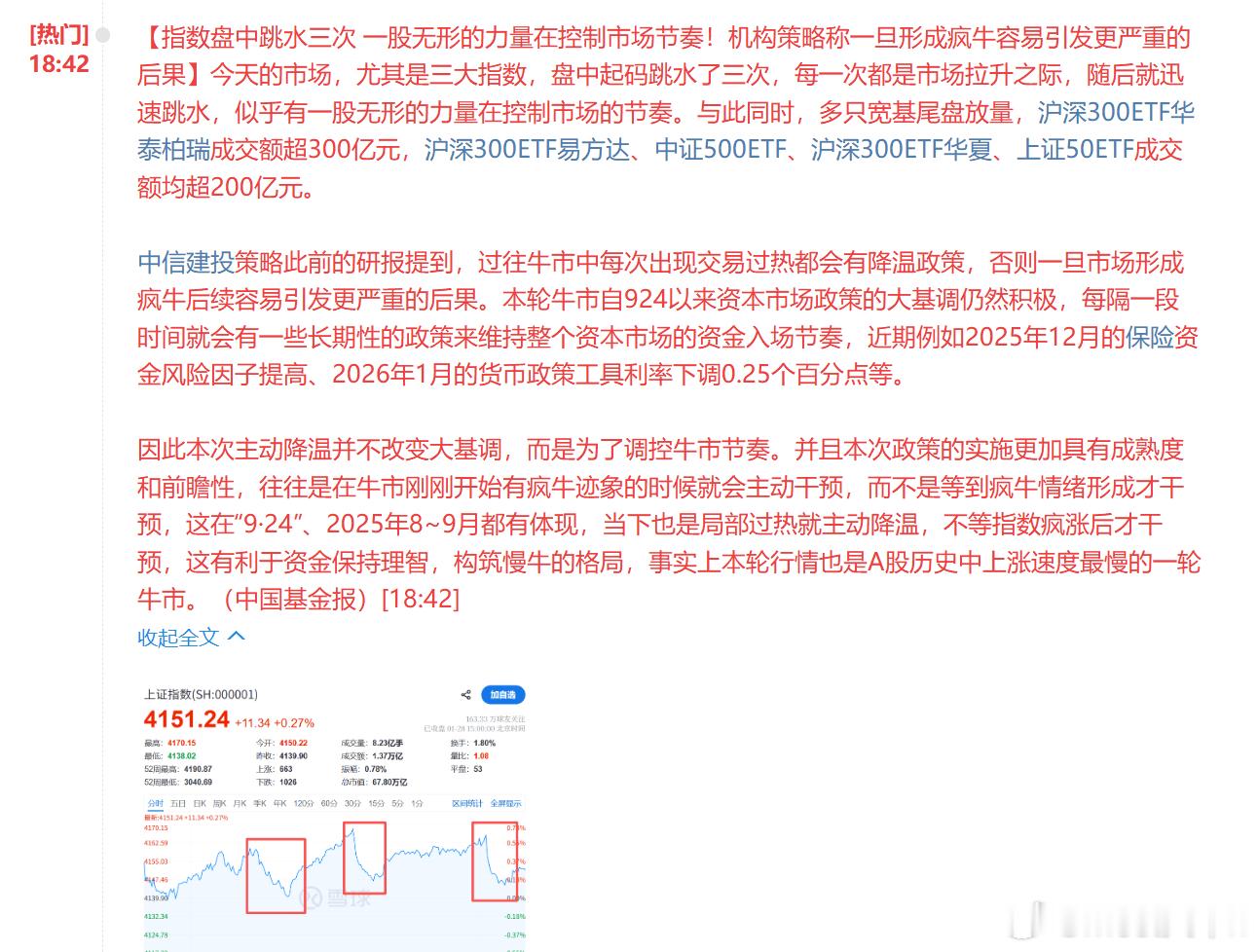 黄金有色方向避险狂飙,盘后利空要注意【指数】指数今日震荡如预期,支撑和压力上下线范围,冲高回落收阳节奏也猜对。日k线不用怀疑,慢牛就是要以进二退一或进三退二的模式运行,自从4190短线见顶后,到今天已经11个交易日,几乎每天都是冲高回落,每根K线都带着上影线,分时就是今天抑制但又压不住的感觉。每天总有数次拉升到一定位置就被打下来,但到一定位置又不破。最近的这种走势跟量化也有着很大的关系和影响,量化这东西目前来看去不了根,但早晚会趋于严格化,慢慢的会把一些恶意量化操作的给优化处理掉。不过,早晚会突然打破这个运行规律,我觉得可能在节前出现,下周正好走出月底效应,时间上差不多。【盘面】上涨家数1739家,下跌家数3640家。实际涨停家数85家,实际跌停家数31家,封板率75%。两市共计成交29923亿,较上个交易日是增量708亿。【连板梯队】7板:白银有色(贵金属)4板:四川黄金(贵金属)、中农联合(化工)、豫光金铅(贵金属)、中国黄金(贵金属)3板:招金黄金(贵金属)、湖南黄金(贵金属)、光正眼科(医疗)、金徽股份(有色金属)2板:康强电子(芯片)、可川科技(CPO)连板梯队来看:18板锋龙股份黑屋闭关,白银打破近期自然连板压制来到7板,明日也将面临是否挑战偏离值,向下贵金属霸屏,2板也是夹缝中生存。从板块来看,资源股全天领涨,贵金属、油气、电解铝方向轮番爆发,中国黄金4连板,湖南黄金3连板,中曼石油、晓程科技3天2板,四川黄金10天6板,招金黄金8天5板,石化油服、准油股份涨停,中国铝业涨停创16年新高。分散染料概念集体走高,浙江龙盛、闰土股份、亚邦股份涨停。存储芯片概念表现活跃,中微半导触及20CM涨停,气派科技20CM涨停。下跌方面,医药医疗、光伏等板块跌幅居前。【热点梳理】题材方面,黄金、白银以及诸多有色,在全球期货飙涨的带动下,今日迎来集体暴涨。白银有色7连板,豫光金铅4连板,湖南黄金、四川黄金、招金黄金3连板;西部黄金、上海建工、晓程科技(20CM)、铜陵有色、恒邦股份、湖南白银、中金黄金、赤峰黄金、株冶集团、盛达资源、鹏欣资源、贵研铂业涨停;中金岭南、山东黄金、洛阳钼业、兴业银锡、山金国际、宝鼎科技、华钰矿业等集体大涨。截至收盘,黄金、白银分别大涨10.22%、9.03%,各类有色金属集体清一色大涨。已经涨到连上海建工这种都能给搞板了……不仅如此,下游的珠宝饰品也被带动大涨。豫园股份、莱绅通灵、金一文化、航民股份、菜百股份、迪阿股份(20CM)涨停,曼卡龙、老凤祥、周大生、萃华珠宝等集体大涨。珠宝饰品板块全天单边大涨超8%。大农业板块迎来逆势走强,中农联合4连板,和邦生物、农发种业涨停,晓鸣股份涨超10%,广信股份、富事特、海南橡胶、神农种业、荃银高科、北大荒等集体大涨;此外,染料、煤炭、油气、稀土等均有大涨表现,云计算、算力整体高开低走,尼帕病毒、AI应用、高位强势股等跌幅居前。【明天】目前题材不让炒作,黄金有色方向才避险狂飙,每一段时间都有每一段时间的市场偏好,不过,踏空的后手资金纠结,盘后利空会不会带来明天板块的分歧,要看外围黄金期货走势,半夜起夜撒尿记得顺手看看外围黄金价格。关键是如果分歧,能不能接?本月还剩两个交易日,祝好!