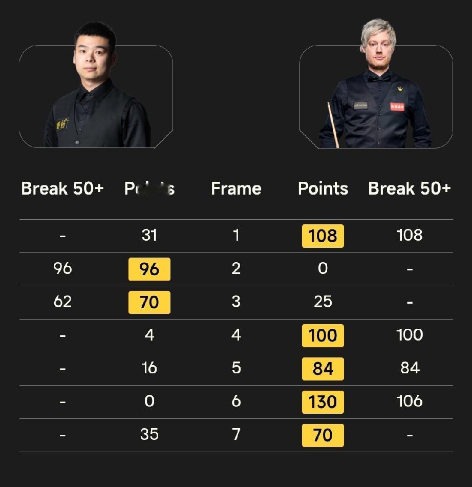 尼尔·罗伯逊打出巅峰状态! 1月28日,在斯诺克德国大师赛32进16轮次的比赛中,“墨尔本机器”尼尔·罗伯逊打出了巅峰状态!他对阵中国球员庞俊旭,罗伯逊打出单杆108分拿下第一局。随后,庞俊旭开始发挥,打出两杆50+把比分改写成2-1领先! 尼尔·罗伯逊时刻来到! 打出四连鞭,包括两杆破百一杆50+,5-2击败庞俊旭,强势晋级16强。 1/8决赛,尼尔·罗伯逊对阵印度黑马辛格·查达,晋级八强没啥挑战。
