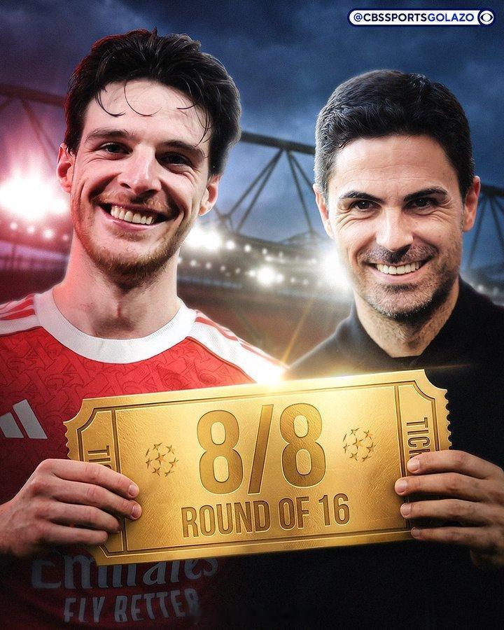 只有一支球队以全胜战绩结束了欧冠联赛阶段:那就是阿尔特塔执教的阿森纳 阿森纳3比