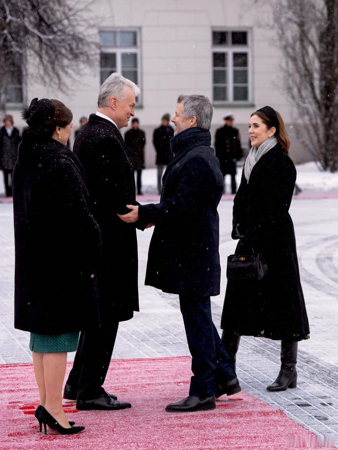 丹麦王室 🇩🇰🇱🇹1月28日,弗雷德里克国王和玛丽王后抵达立陶宛进行国事访问。立陶宛总统吉塔纳斯·瑙塞达阁下和夫人戴安娜在总统府为国王夫妇举行欢迎仪式,两国元首互相交换勋章和礼物。世界各国王室