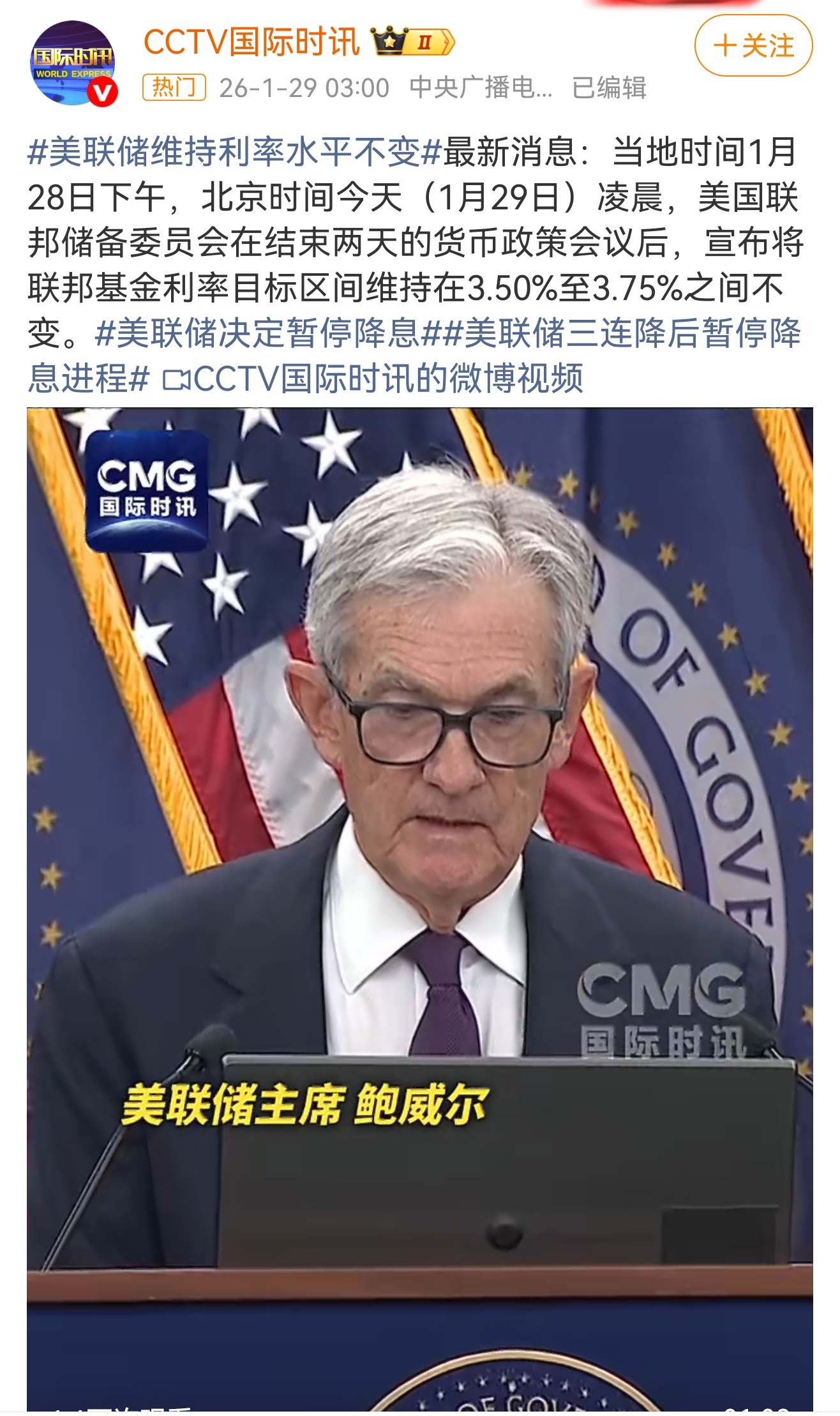 美联储维持3.5%-3.75%利率不变,短期推强美元、稳美债,非美货币与黄金承压