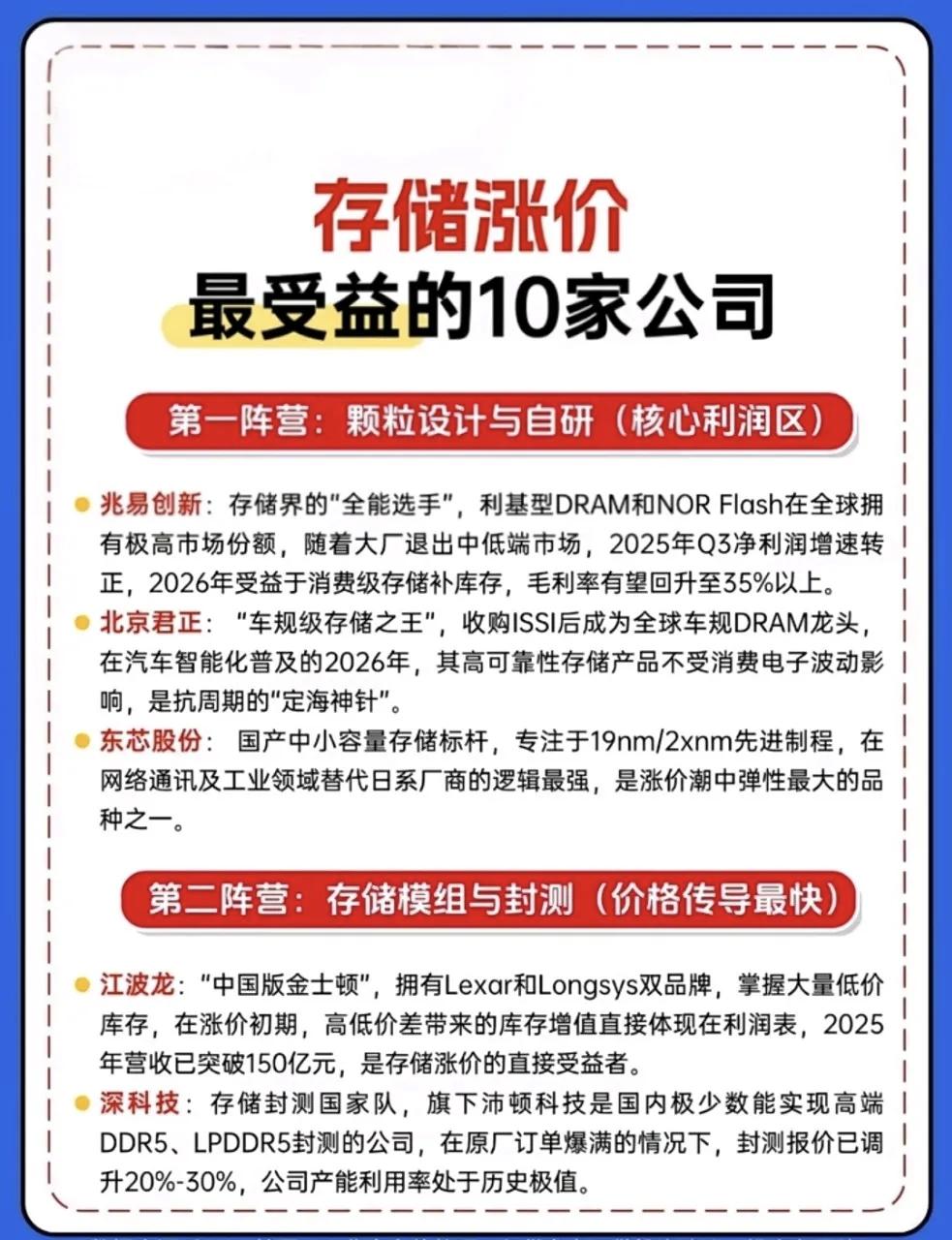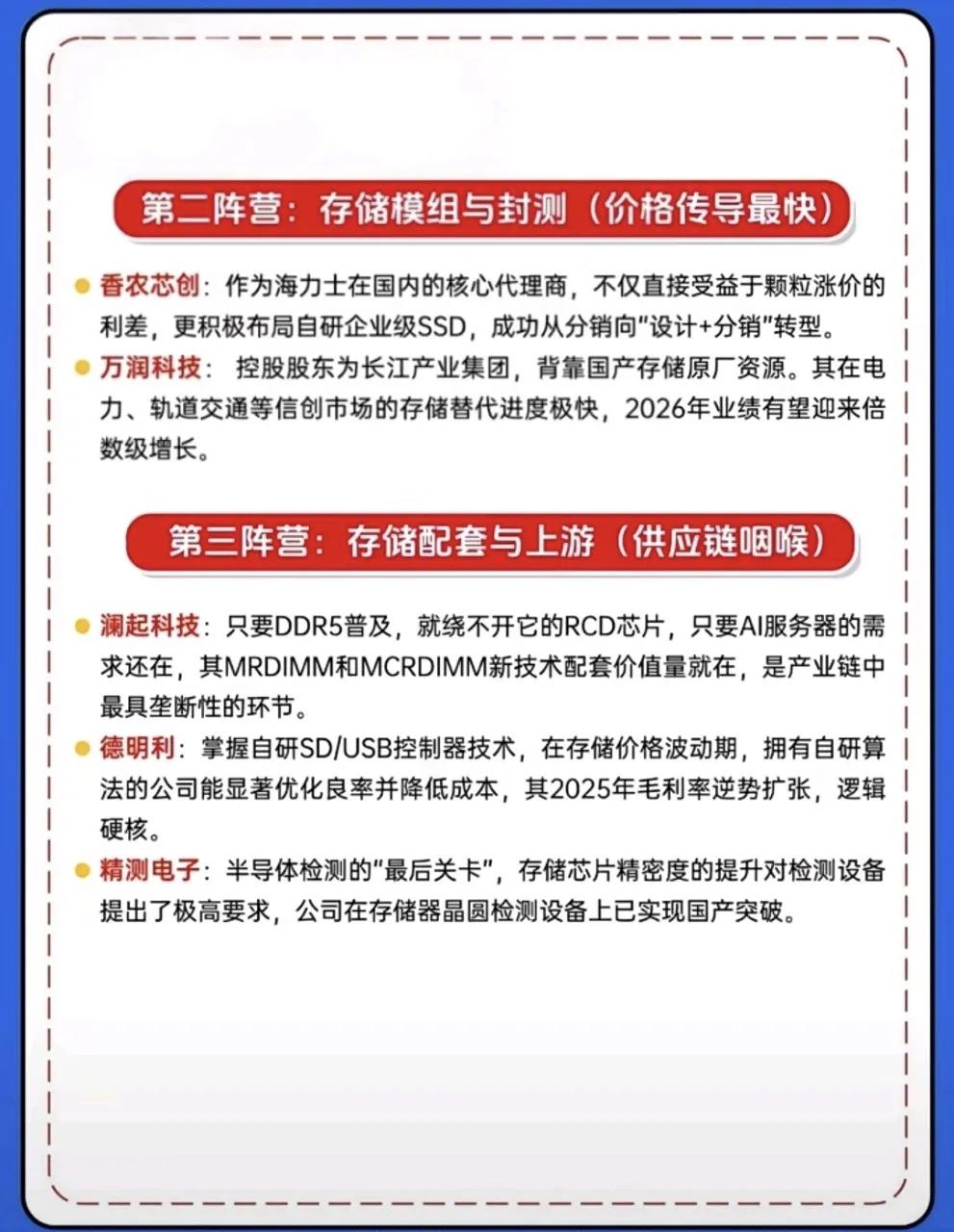 核心科技没有杂毛,算力与存储双主线,看懂国产替代核心机会,CPU概念10大龙头+存储芯片10大龙头名单曝光! 高层决策核心科技自主可控,AI人工智能的快速发展,算力芯片长期高景气,国产替代空间广阔。全球AI服务器CPU市场规模预计在2026年同比增速达140%,未来5年算力需求将增长超180倍。 从“算力心脏”国产CPU的自主突破,到存储涨价浪潮中的受益龙头,这些公司不仅是技术突围的先锋,更是产业趋势的核心标的。无论是龙芯中科、海光信息在CPU领域的技术攻坚,还是兆易创新、江波龙在存储赛道的卡位布局,都在勾勒出国产替代的清晰脉络。 当全球算力格局重构、存储周期向上,这些扎根核心技术的企业,正成为把握产业红利的关键抓手。 理财有风险入市需谨慎!存储芯片行情 AI算力板块 存储芯片概念股 ai硬件股 ai芯片概念股 ai算力产业链 AI算力新格局