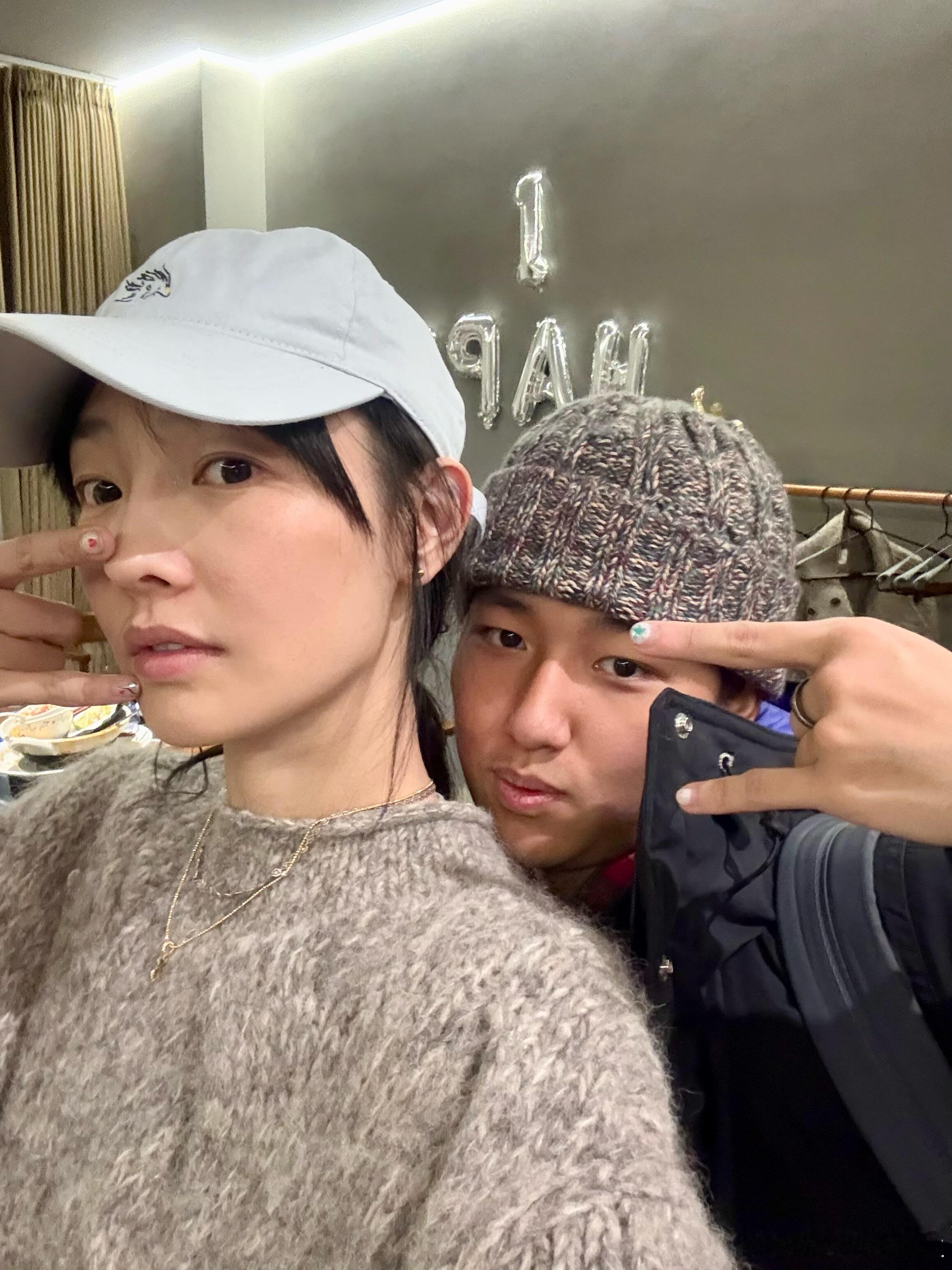 白百何晒与大儿子合影,18岁元宝长得真像爸,母子俩做了同款美甲
