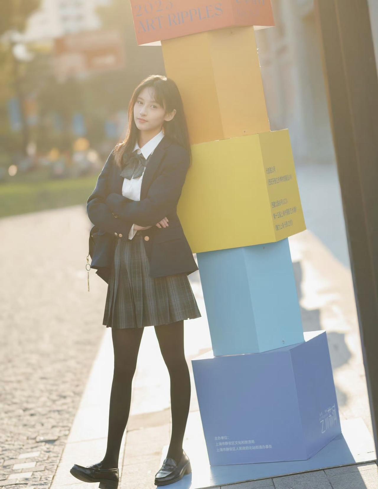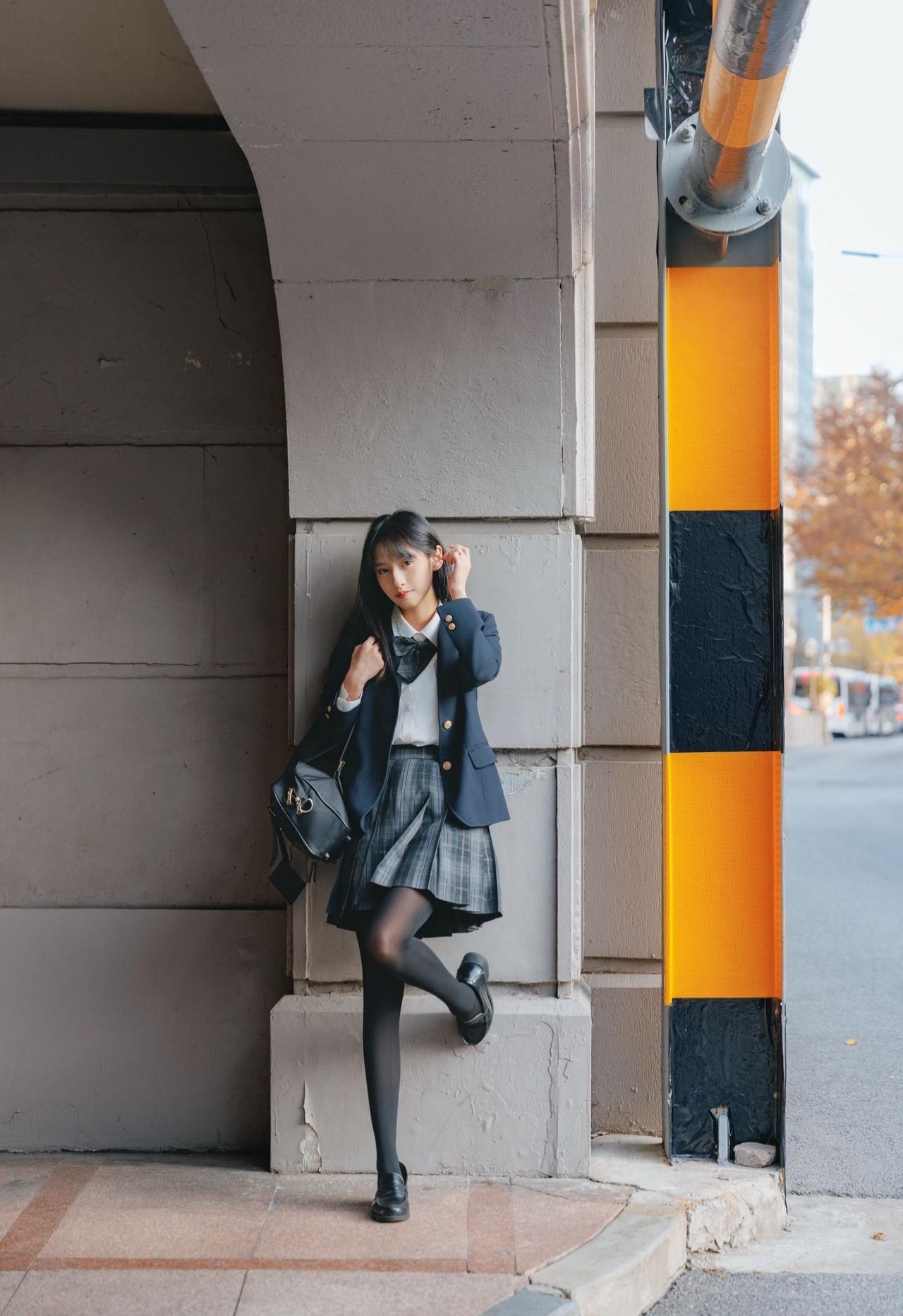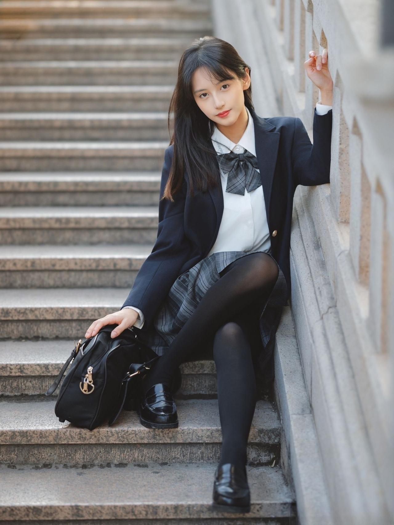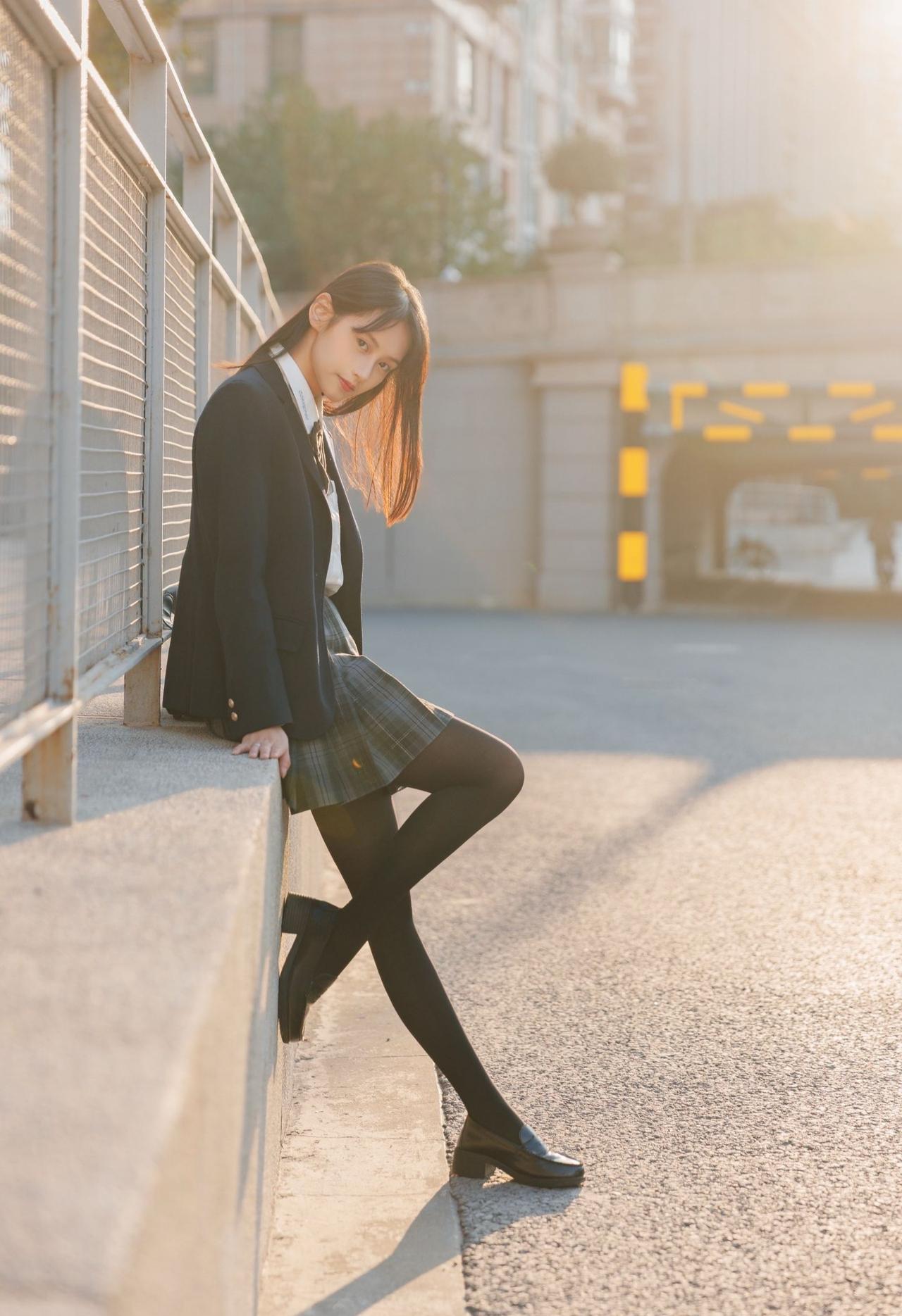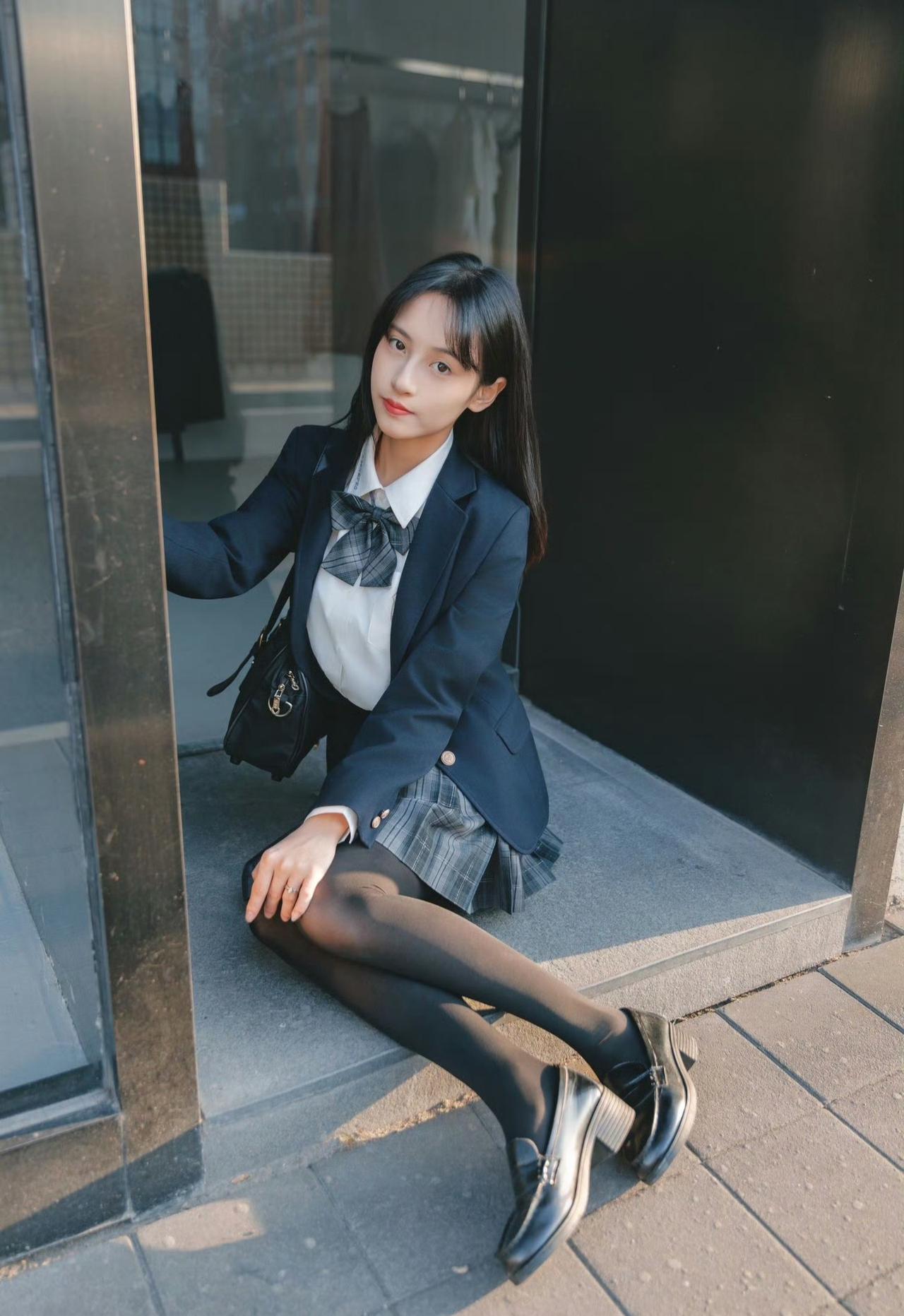 这套穿搭是清新利落的学院风,把校园感体现的淋漓尽致。JK套装藏蓝西装+格纹百褶裙自带学院氛围,白衬衫+领结添清新感。 搭配黑皮鞋强化学院利落感,和红砖建筑的复古氛围高度契合。充分展现穿着者清新靓丽的魅力。jk青春感穿搭 jk风日常穿搭 jk西服穿搭