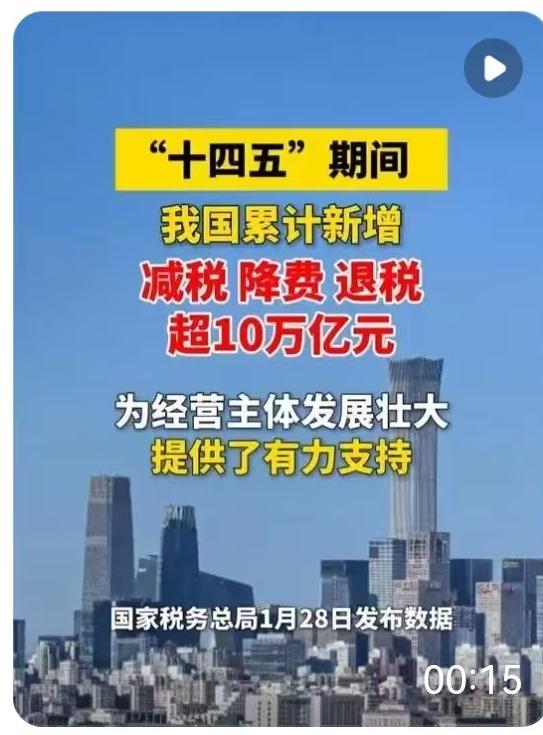 就在1月28日,国家税务总局甩出了一份沉甸甸的“十四五”税收成绩单,看完这些实实在在的数据,心里那股踏实感油然而生。这不是简单的数字罗列,这背后是国家经济脉动的强劲回响,更是咱们企业和老百姓看得见、摸得着的红利。 大家先盯着这个大数看:156万亿元。这是“十四五”期间全国累计征收的税费总额。这个体量意味着什么?它占据了全口径财政收入的80%左右。可以这么说,国家修桥铺路、搞建设、保民生,这10块里有8块是税务系统一点点收上来的。正是这笔庞大的资金,为经济社会发展夯下了最厚实的财力基础,让国家大事小情有了运转的底气。 更有意思的是,这156万亿元并不是单方面的“索取”。在同一时期,国家手里这把算盘,算得精准,更算得大气。数据显示,“十四五”期间,我国累计新增减税降费及退税金额超过了10万亿元。 一边是依法征收、汇聚国力,另一边是放水养鱼、涵养税源。这“一收一放”之间,透着极大的智慧。对于经营主体而言,这10万亿元就是真金白银的“输血”。不管是科技创新的企业,还是街边的小店,这笔钱留在了企业账上,就变成了研发投入的资本,变成了保住饭碗的工资,变成了熬过寒冬的现金流。 以前我们总担心税收压力大,企业发展难。现在看,国家在用财政收入约1/16的规模,反哺市场。这笔账,长远来看,不仅没有“亏”,反而把市场主体的活力给盘活了。税收不是冰冷的冷冰冰的条文,它有温度,体现在每一次政策落地的实惠里。 这33.1万亿元(注:此处引用自提供素材中的特定数据背景)的税费规模流转,加上超10万亿的退减免,构成了这几年中国经济极具韧性的画面。对于咱们普通人来说,看到数据背后的逻辑,也就更明白为什么即便面对外部环境的风浪,咱们依然能稳住阵脚。家底厚实,政策给力,企业敢干,这就是最大的底气。 读懂了这些数据,也就读懂了未来的路该怎么走。无论你是创业者还是打工人,这份来自国家税务总局的报告,都值得你好好琢磨,因为它关乎你我的钱袋子,也关乎中国经济下一个阶段的走向。 以上内容仅供参考和借鉴