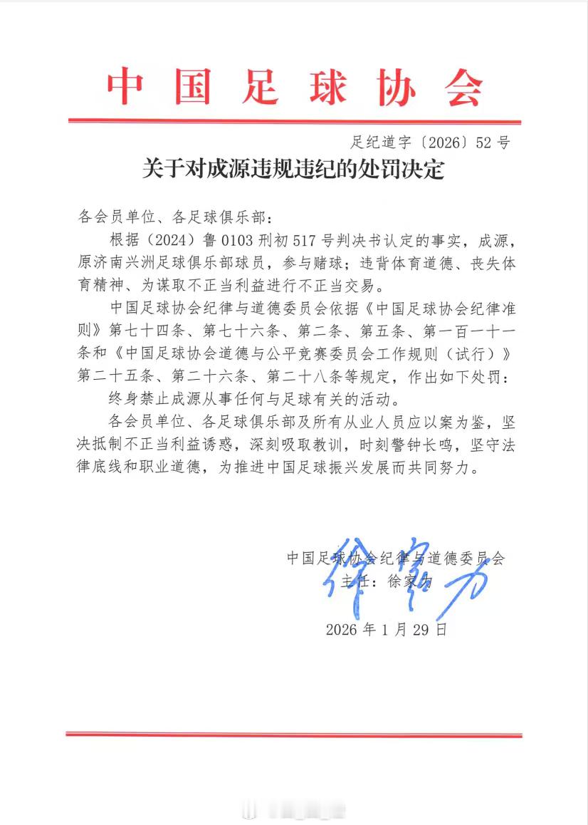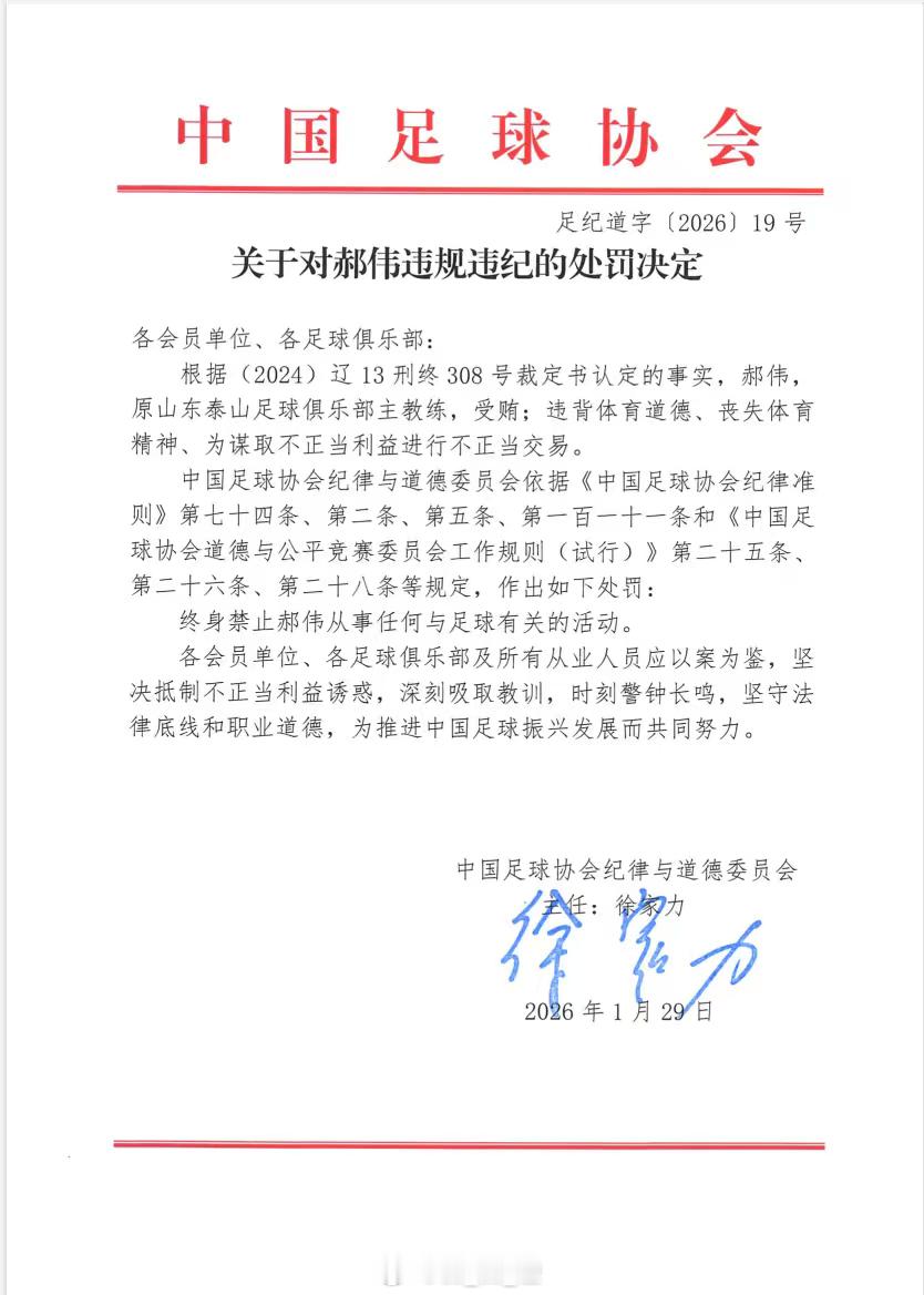 中国足协官网相关俱乐部通报自由橙山东泰山