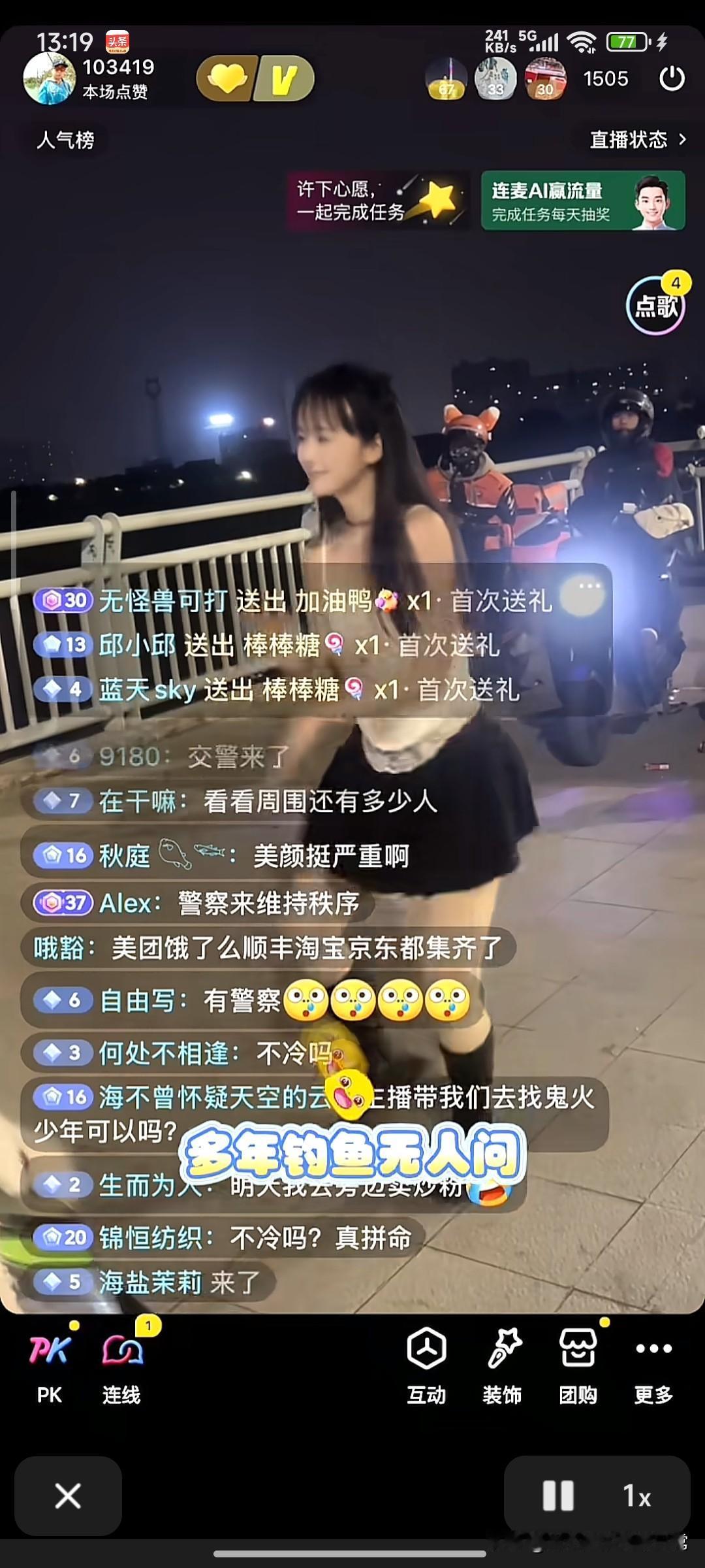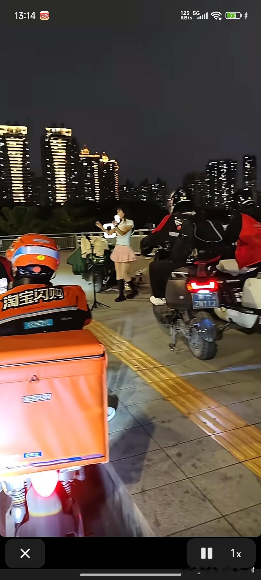 别催了!你的外卖小哥在看直播跳舞! 刷到这视频我直接笑到打鸣! 深夜的网红天桥,一个穿着短裙的女主播正架着补光灯热舞,直播间里飘着“美团饿了么顺丰淘宝京东都集齐了”的弹幕。镜头一转,几个外卖小哥真的把车停在路边,头盔都没摘,就这么静静围观。 突然就原谅了我那迟到半小时的外卖!谁不是在为生活拼尽全力?小哥可能刚爬完10楼送完餐,正攥着皱巴巴的订单喘着气,刚好撞上这热闹的人间烟火。 在这钢筋水泥的森林里,主播在为流量扭腰,骑手在为订单奔波,这一刻的停顿,无关偷懒,只是两个为生活努力的普通人,在互相治愈。 下次外卖迟到,我可能不会催了,说不定小哥正在天桥上,偷偷给自己充了个电呢! 你会催正在看跳舞的外卖小哥吗?