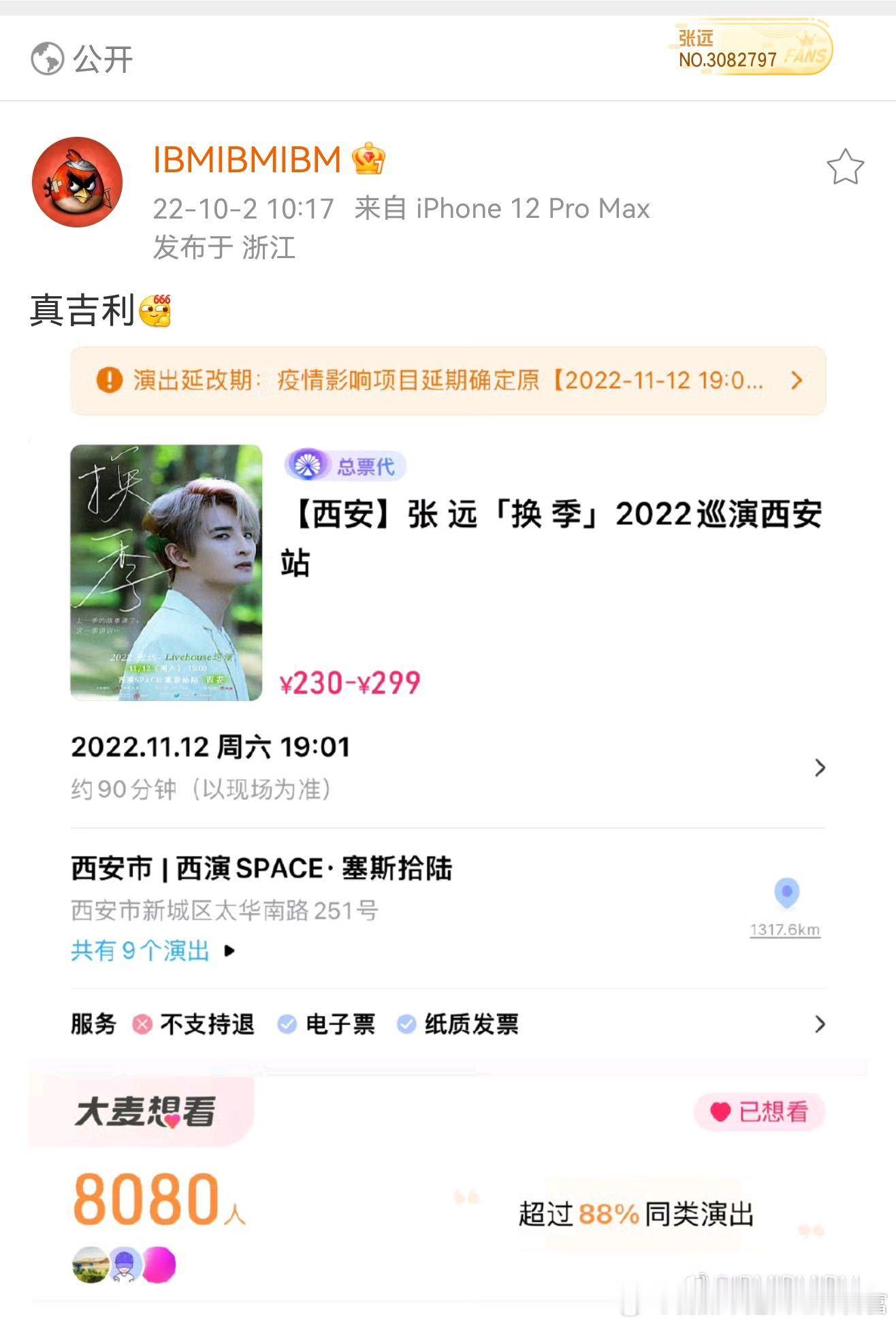 张远西安演唱会售罄 远行巡回演唱会首站西安开票秒售罄,开票前想看人数飙升至10w,售罄后平台直接下架,真的太火爆了!从一巡换季的西安场,想看人数只有8000,到今天10w预约,从livehouse到体育馆,从体育馆连开到体育场连开,张远一步一步脚踏实地走来,这都是他应得的!