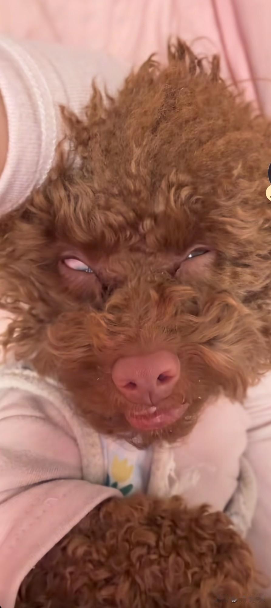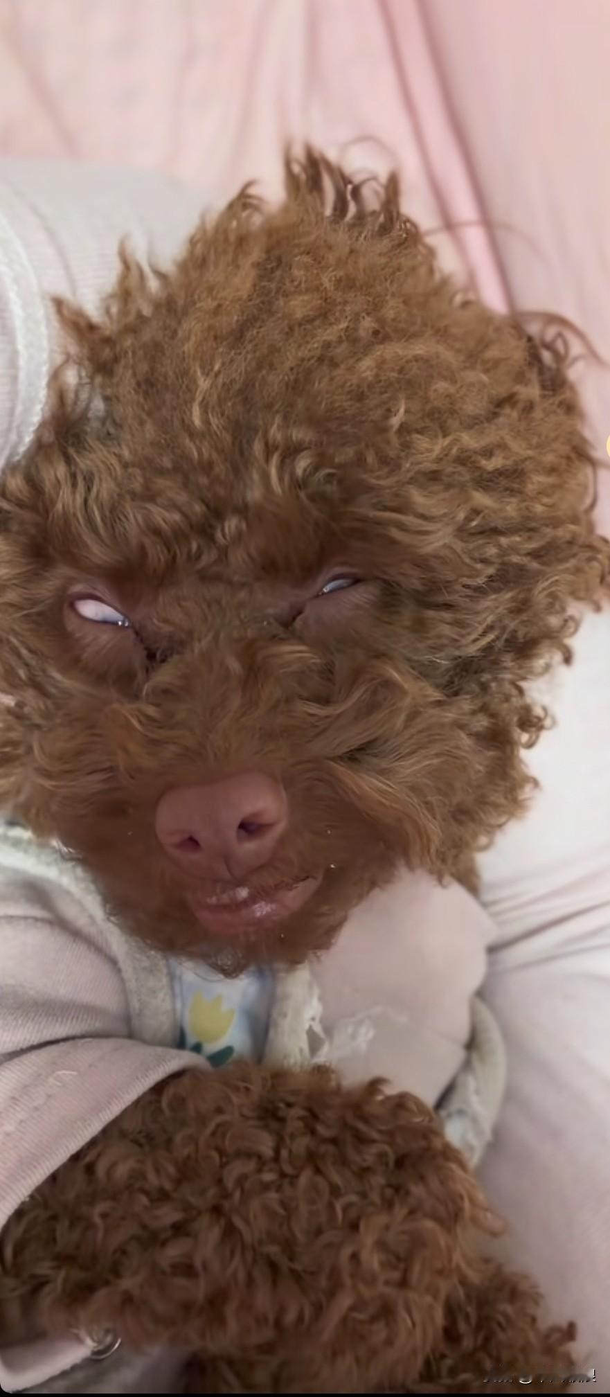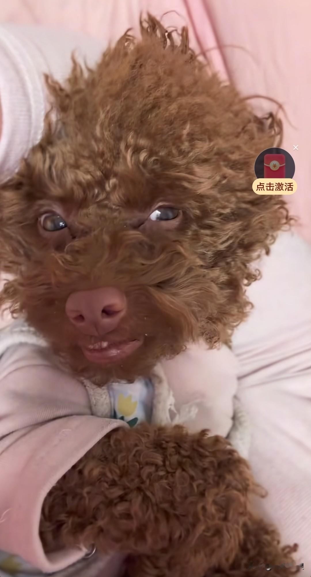 泰迪看到主人就翻着一只白眼,还牙齿露出来向着她,像这样像貌的狗能养吗?泰迪狗